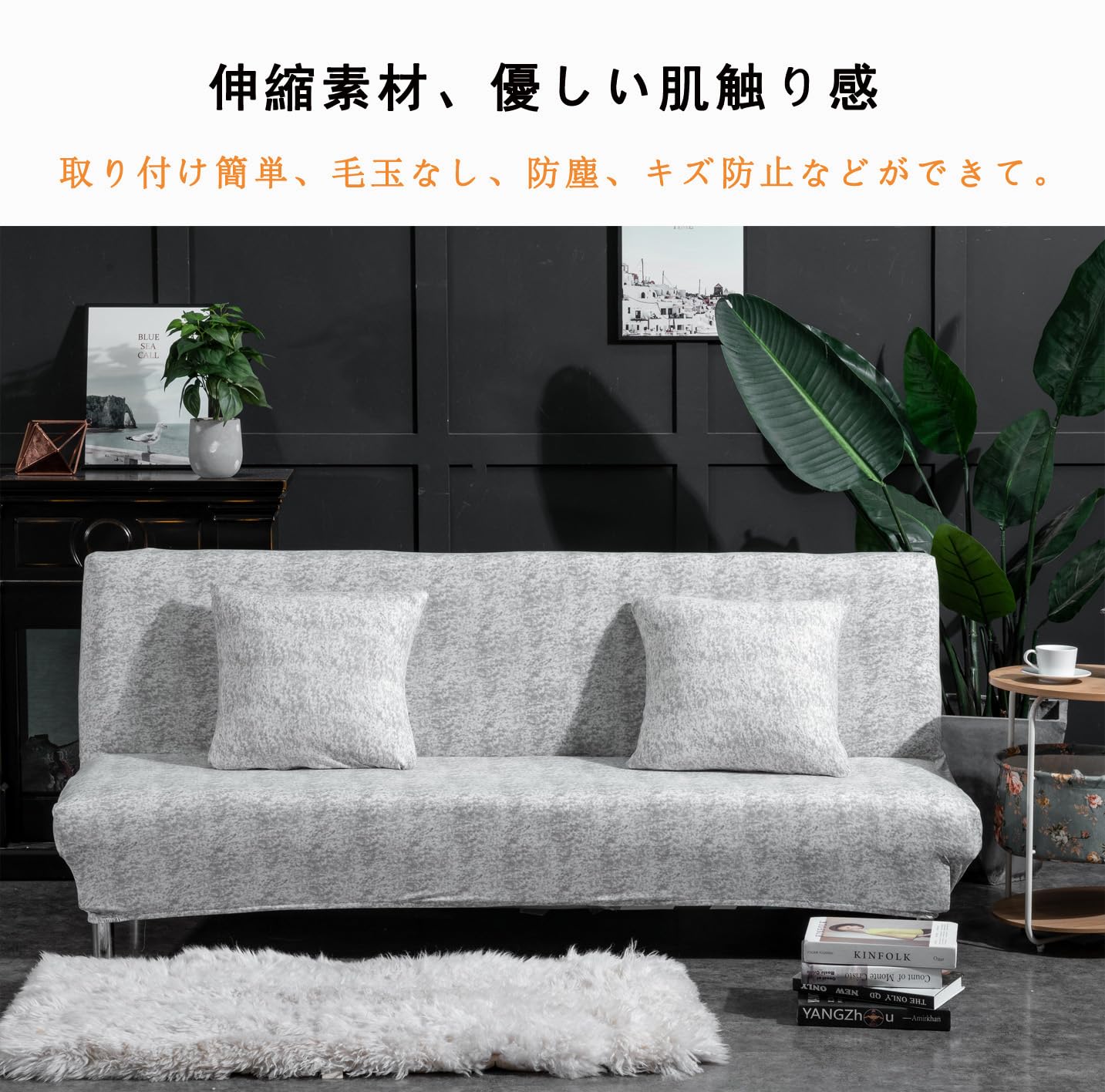 ソファーカバー 2人掛け 伸縮素材 ソファベッドカバー 肘なし 柔らかい 犬猫傷 防止 汚れ防止 防塵 クッションカバー2枚付 収納便利 洗える 四季通用