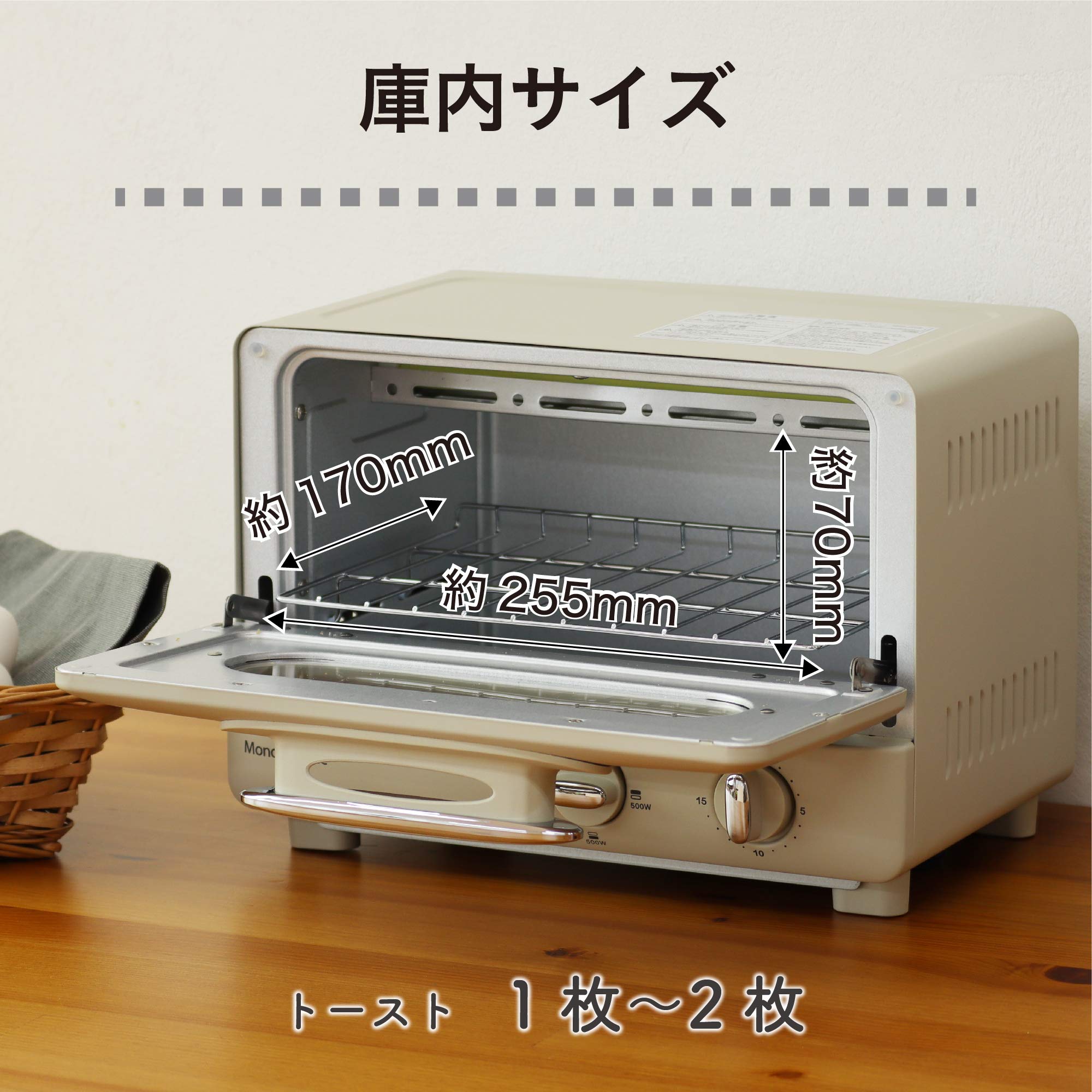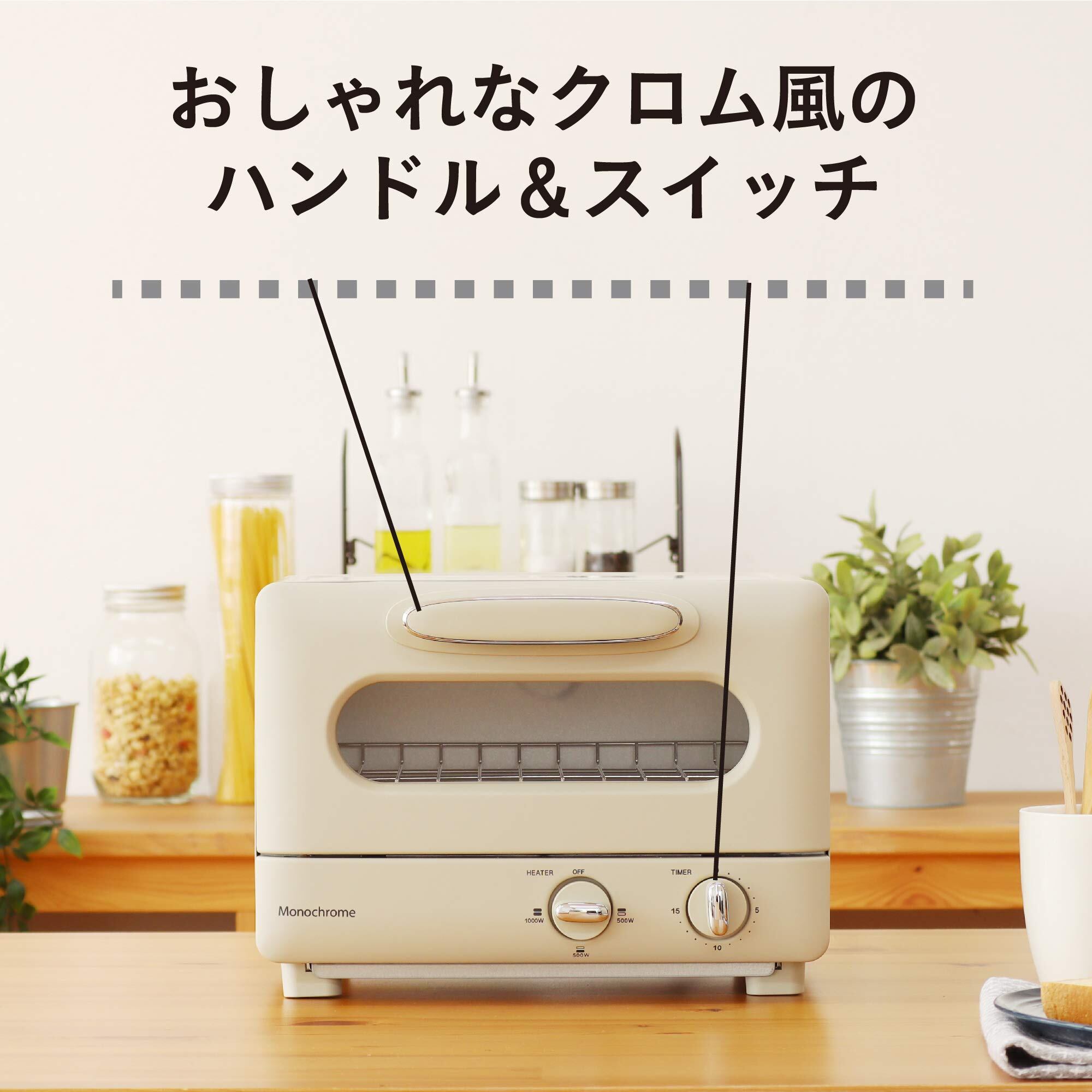 モノクローム(Monochrome) コイズミ オーブントースター 1000W ヒーター3段階切替 15分タイマー パンくずトレー付き レトロ ホワイト MOS-1028/W