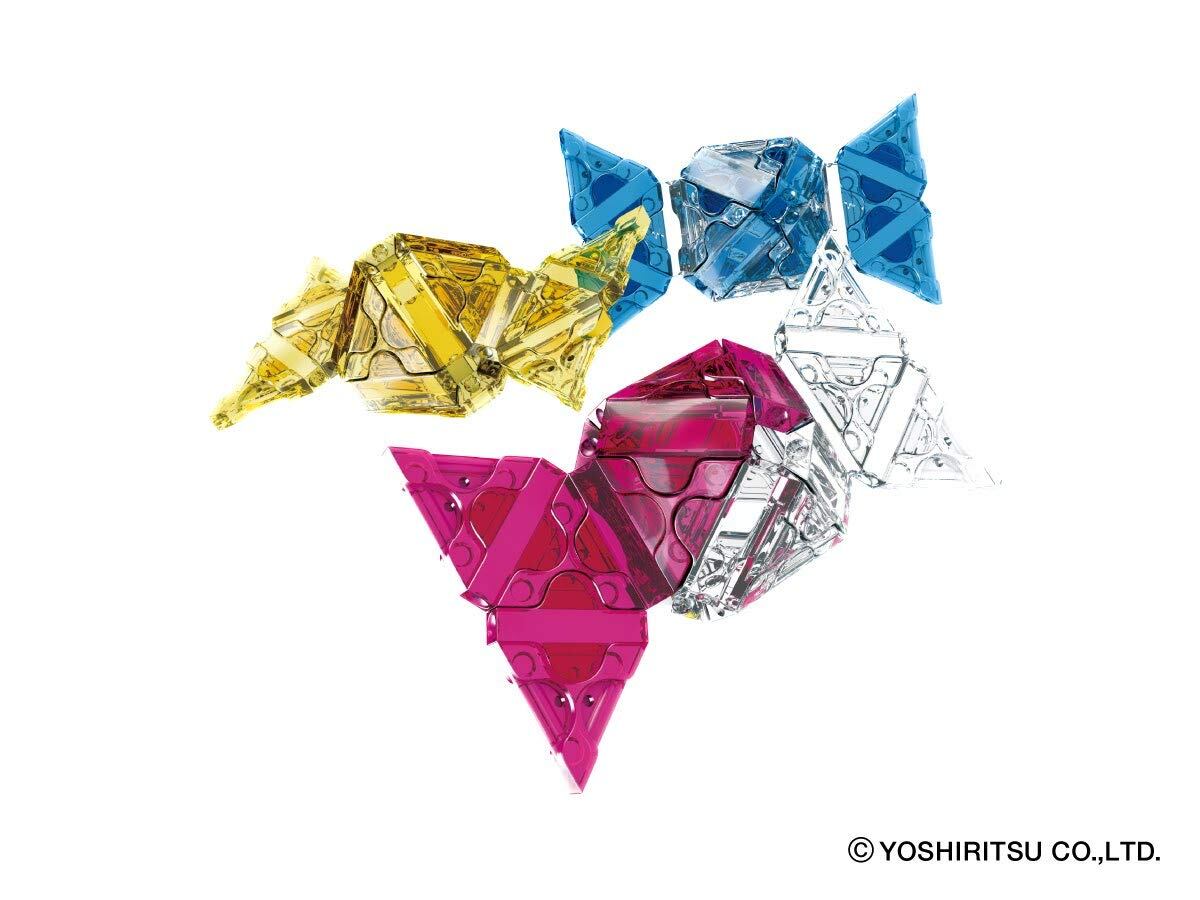 「カエル」「クラゲ」「クモ」「キャンディ」「ペガサス」「テディベア」「クリスタルボール」「お城」の15種類に組み替えられる作り方の本1冊つき。