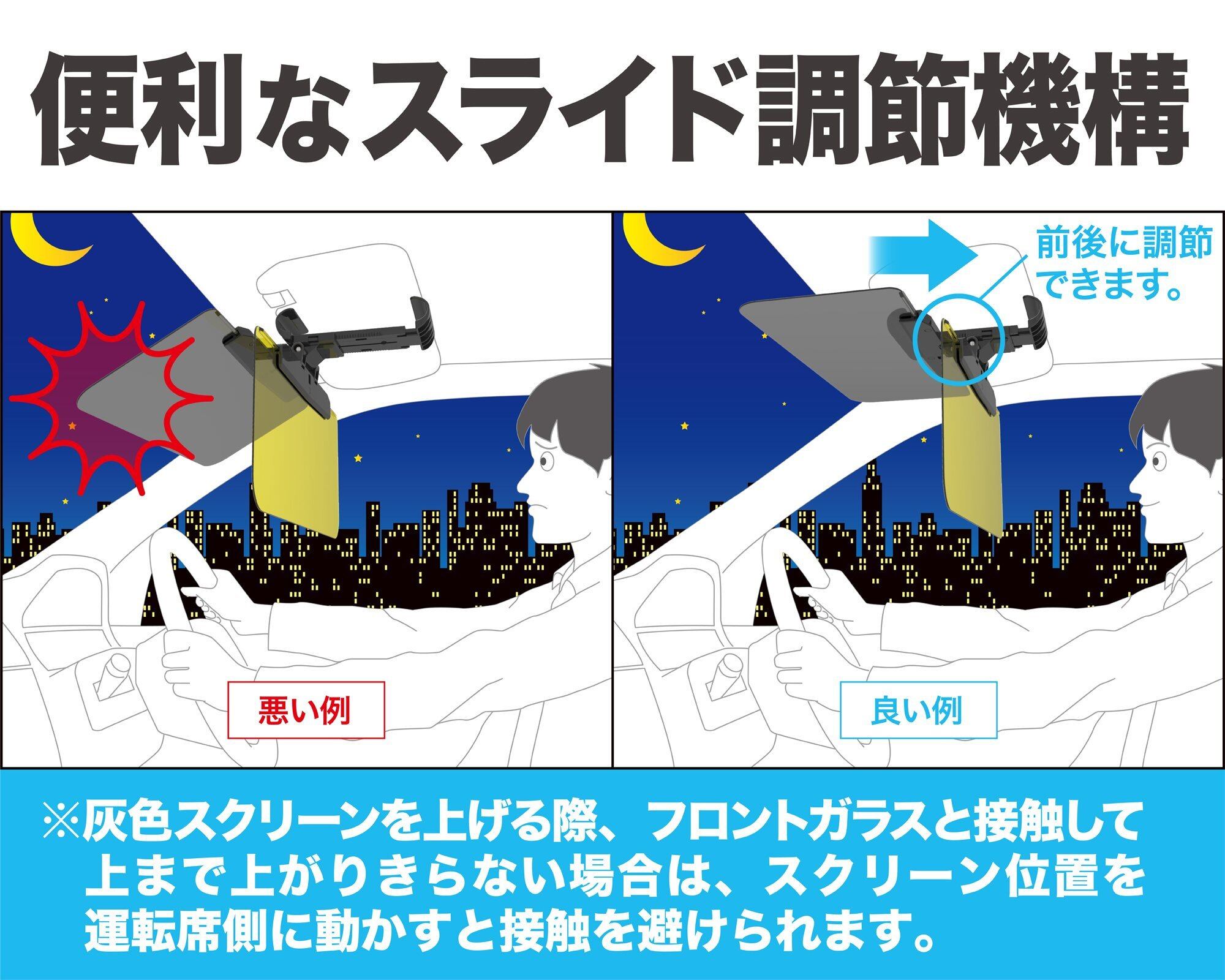 ●昼用スクリーン(スモーク)と夜用スクリーン(黄色)を2枚重ねた状態でのご使用はおやめください。※事故の原因になります。