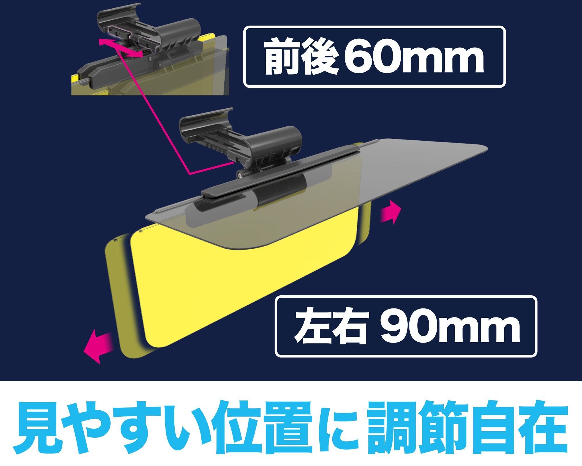 サンバイザーの奥行き最大255mmまでに取付け可能です。奥行きが長いサンバイザーを搭載する「天井の高いハイト系軽自動車やミニバン」にもオススメです。