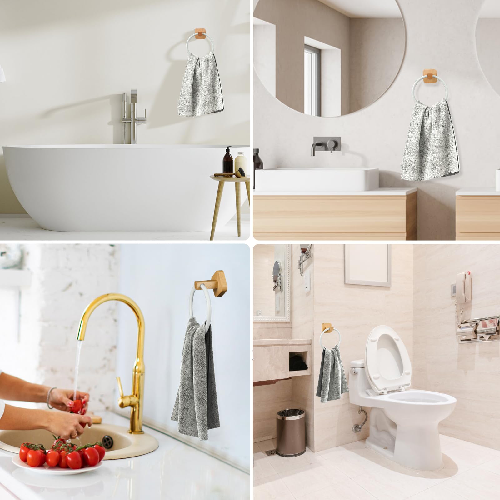 HANNUOXINタオル掛け - リングテールハンガー、壁掛けタオルリング、パンチング設置不要のタオルラック、キッチン、洗面所、バスルームに最適 - ?木製ベース
