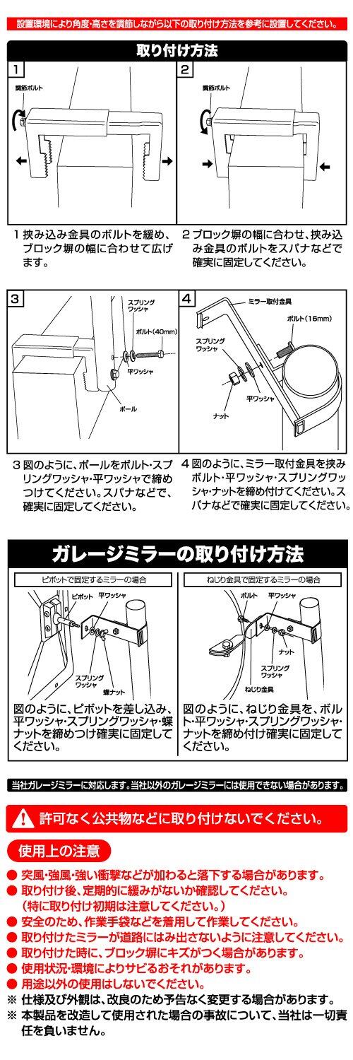 ■塀やブロックにガレージミラーをがっちり固定できる