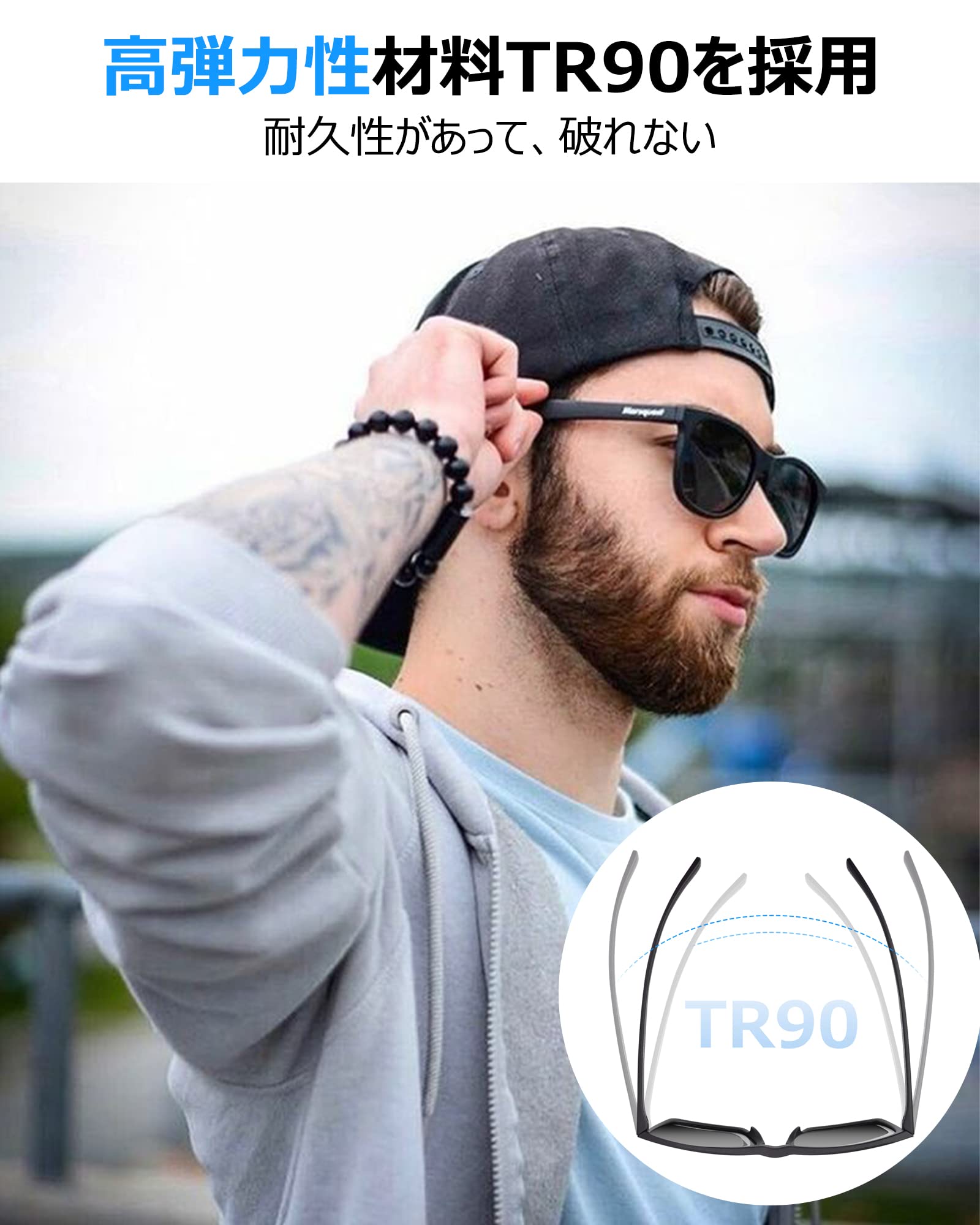 【HD偏光レンズを使用】MARSQUESTサングラスはTAC偏光レンズを使用して、快適な視界を確保できます。芝生や水面の光の反射を防ぐ偏光サングラスでは、視界を妨げるまぶしい光をカットし、日光の眩しさを軽減し、目への負担を軽減することができます。紫外線を100%カットする偏光レンズで、外へ出かけたり運転をしたりと強い日差しを対応するサングラスです。
