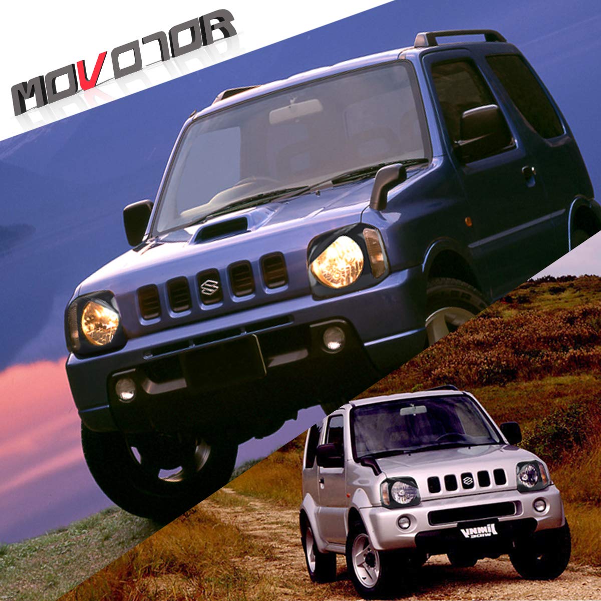 【在庫処分】フロントヘッドライトカバーMOVOTOR ジムニー jb23 フロント 外装 パーツ 怒り目カバー ブラック スズキ JB23 / JB33 / JB43全年式対応