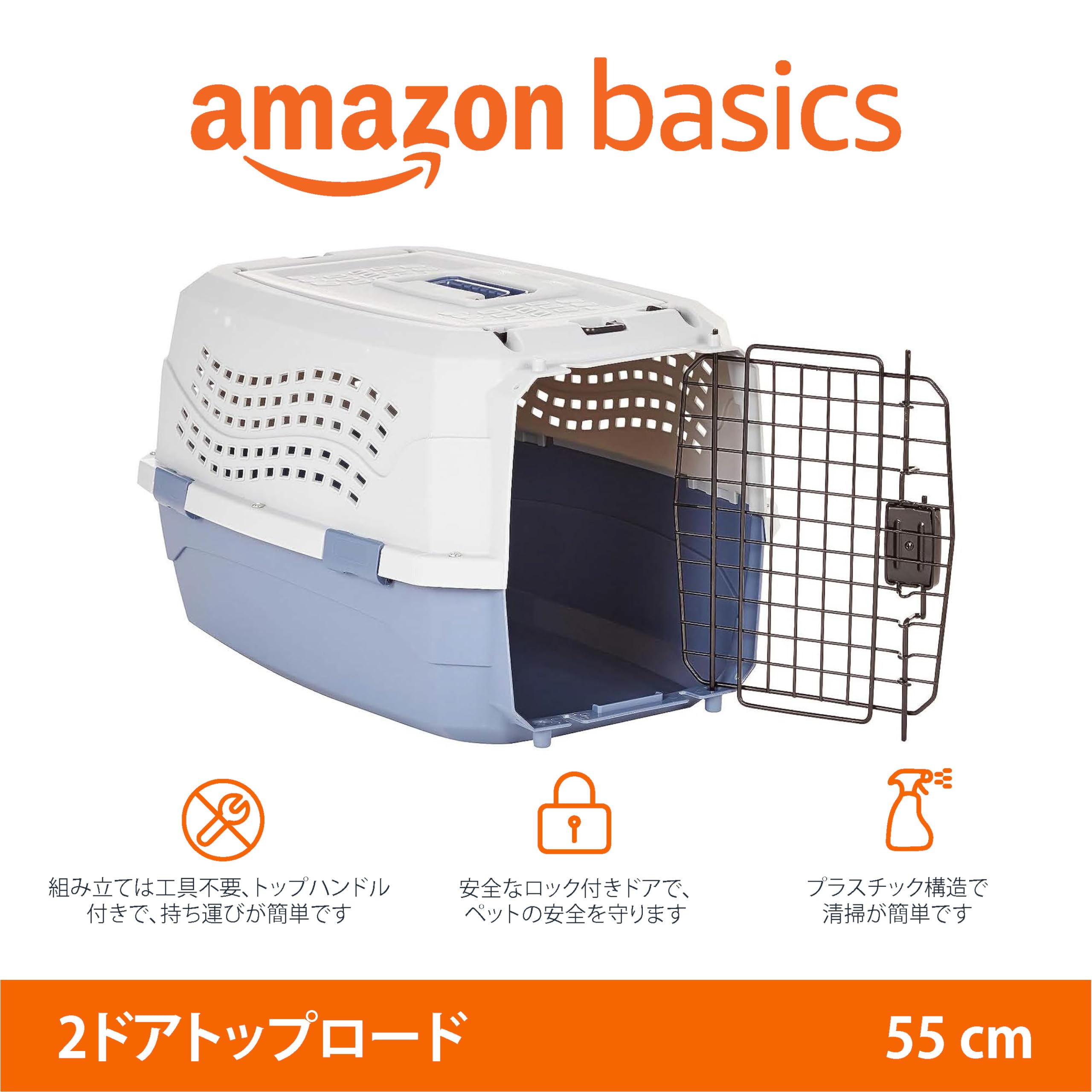ベーシック ペットキャリー ダブルドア 小型犬・猫用 9kgまで Mサイズ 幅38 x 奥行58 x 高さ33cm グレーブルー