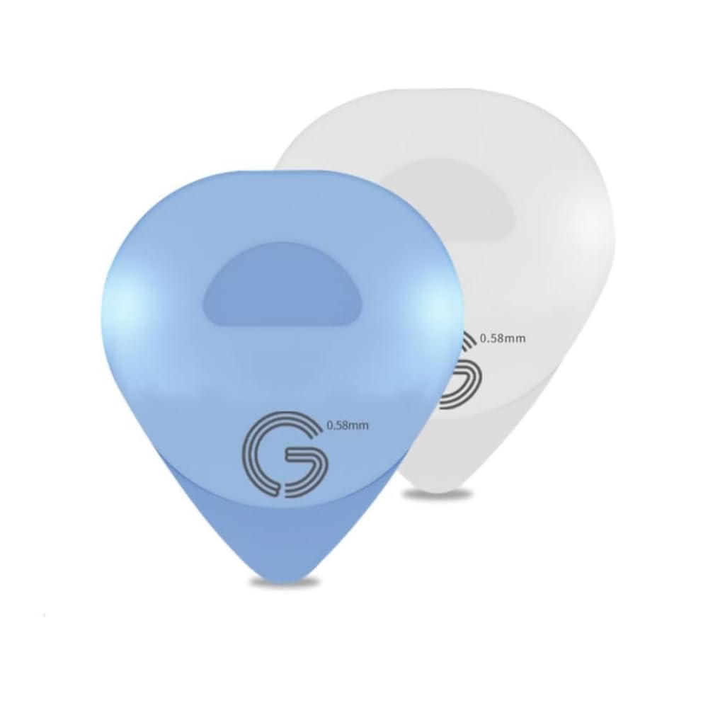 GIMI 光るギターピック カラーギターピック 薄型 タッチ発光 高感度LED 電池交換が簡単 長時間使用可能 耐久性 繊細な触感 滑り止め設計 ポータブルピックケース付き アコギ用 エレキギター用 ベース用 (白+青, 0.58mm)