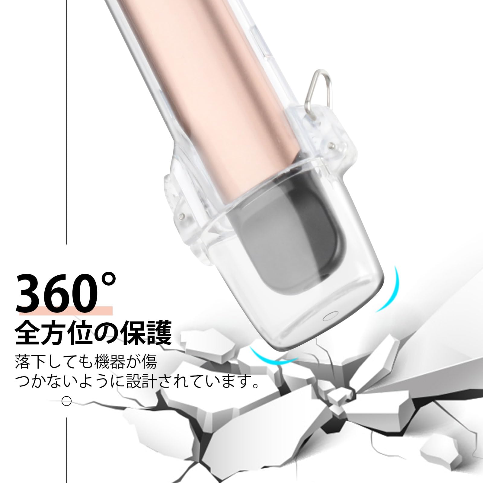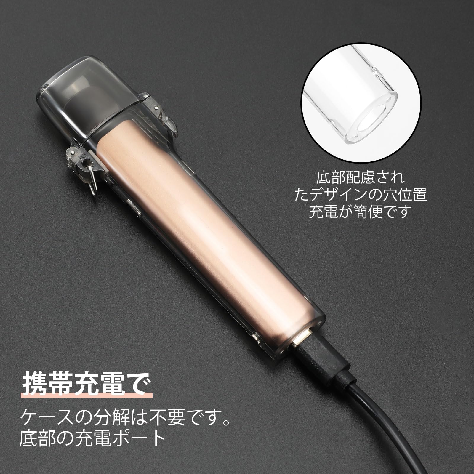【装着したまま充電可】:ケースの底に充電穴があり、ケースをそのまま装着して充電できます。電池残量もはっきりみえます。