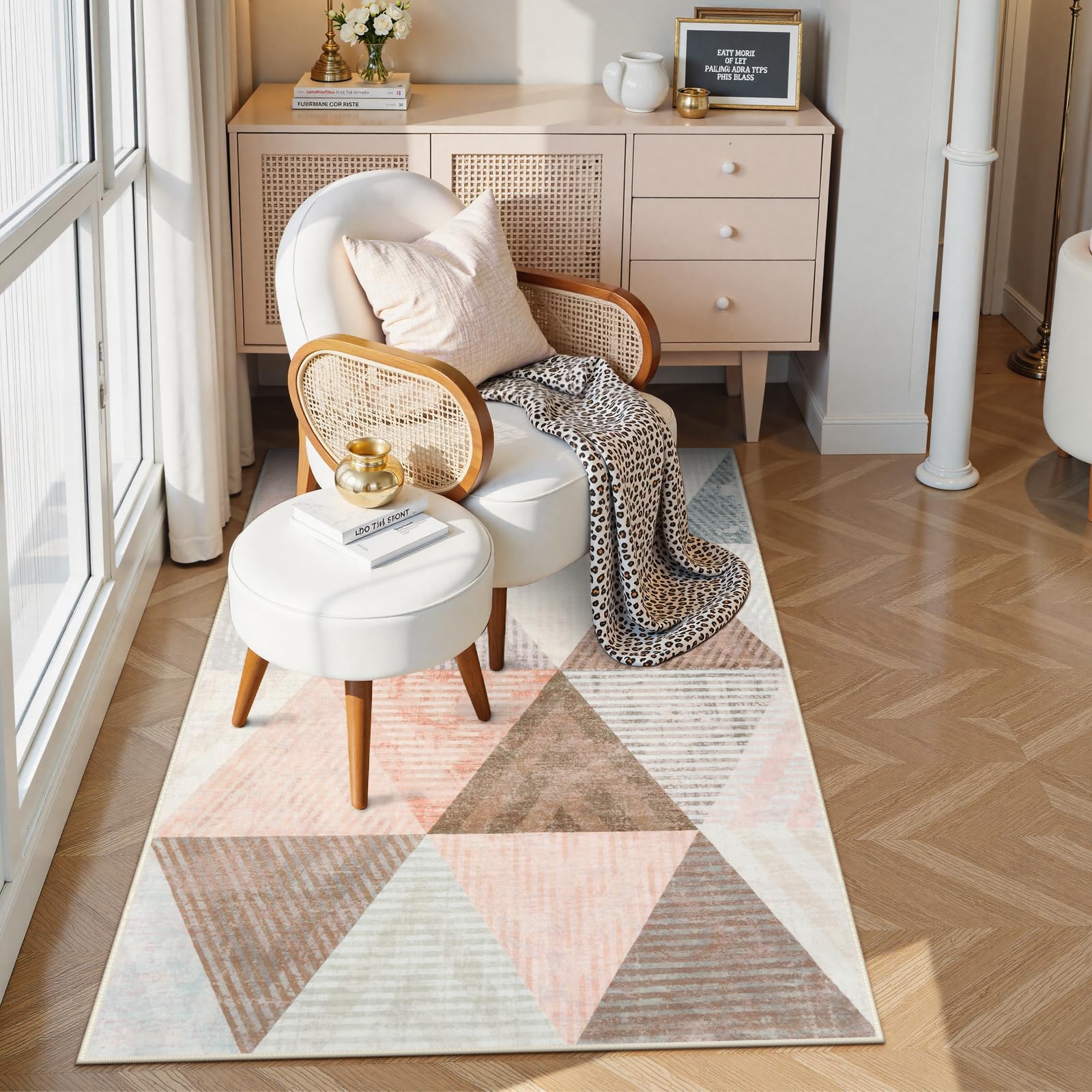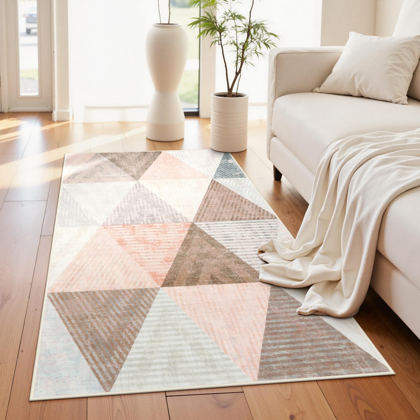 HAOCOO ラグ 洗える 約1畳 90х150cm カーペット 夏用 幾何学 北欧風 モダン ふわふわ 滑り止め 防音 抗菌防臭 リビング ダイニング ラグマット オールシーズン適用 三角形柄 カラーマッチング コーラルブラウン