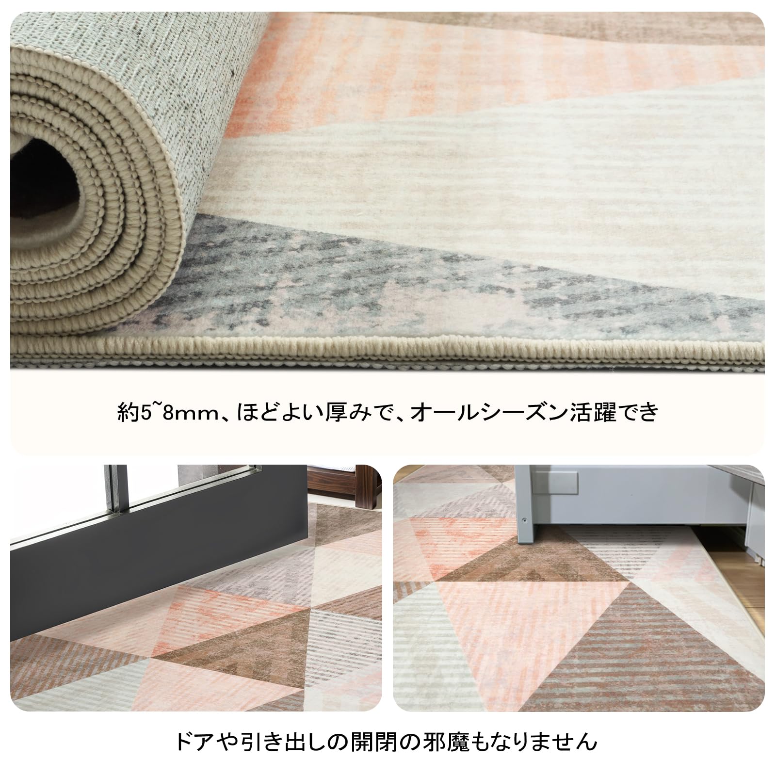 【在庫のみ】HAOCOO ラグ 洗える 約1畳 90х150cm カーペット 夏用 幾何学 北欧風 モダン ふわふわ 滑り止め 防音 抗菌防臭 リビング ダイニング ラグマット オールシーズン適用 三角形柄 カラーマッチング コーラルブラウン