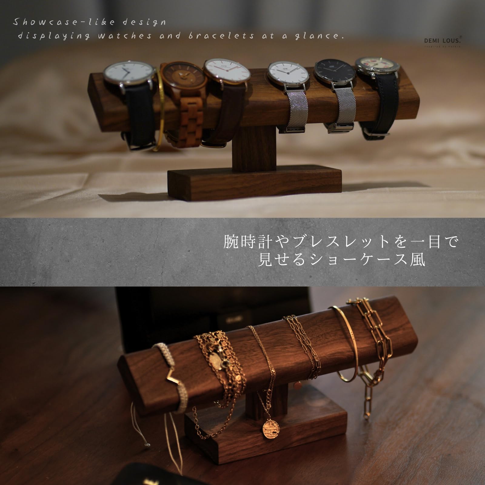 腕時計スタンド おしゃれ 木製 ウオッチスタンド ショーケース 時計ディスプレイ 時計スタンド ブレスレットスタンド 時計置き台 腕時計置き 時計収納 アクセサリー展示 4本〜6本収納可能 (通常サイズ)
