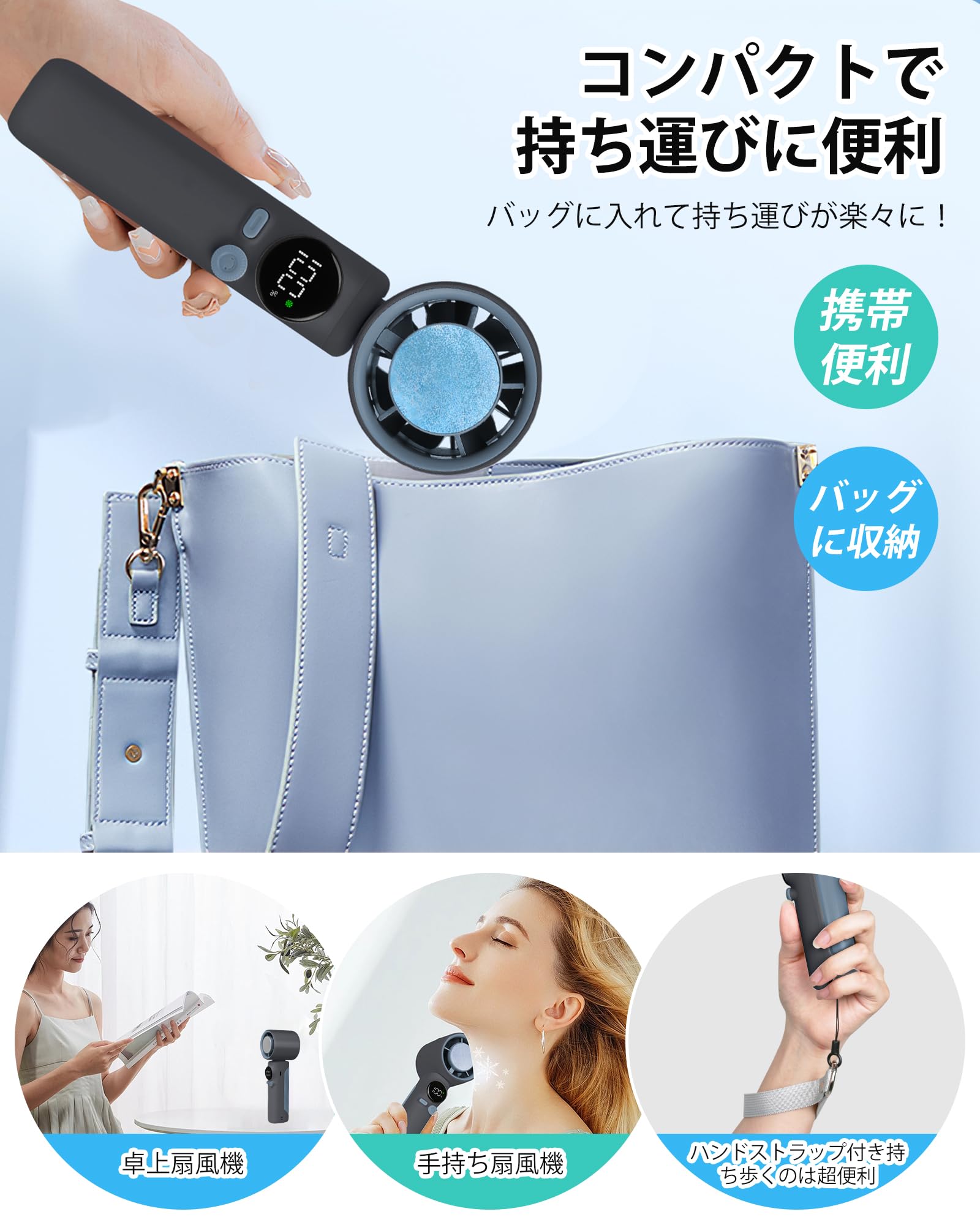 【コンパクト設計&持ち運びに便利】ハンディファンは重さは約245gと超軽量タイプ、負担なく涼しい風を楽しむだけでなく、マルチフックでバッグに引っ掛けるとぶら下げながら持ち運べます、片手で簡単に操作できます、女性にも長時間持っていても疲れません。お出かけの時も持ち運びやすく、通勤、通学、買い物など様々な場面で大活躍です。室内でも屋外でも使いやすい汎用性の高いハンディ扇風機です。