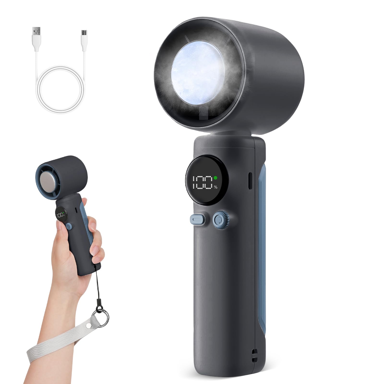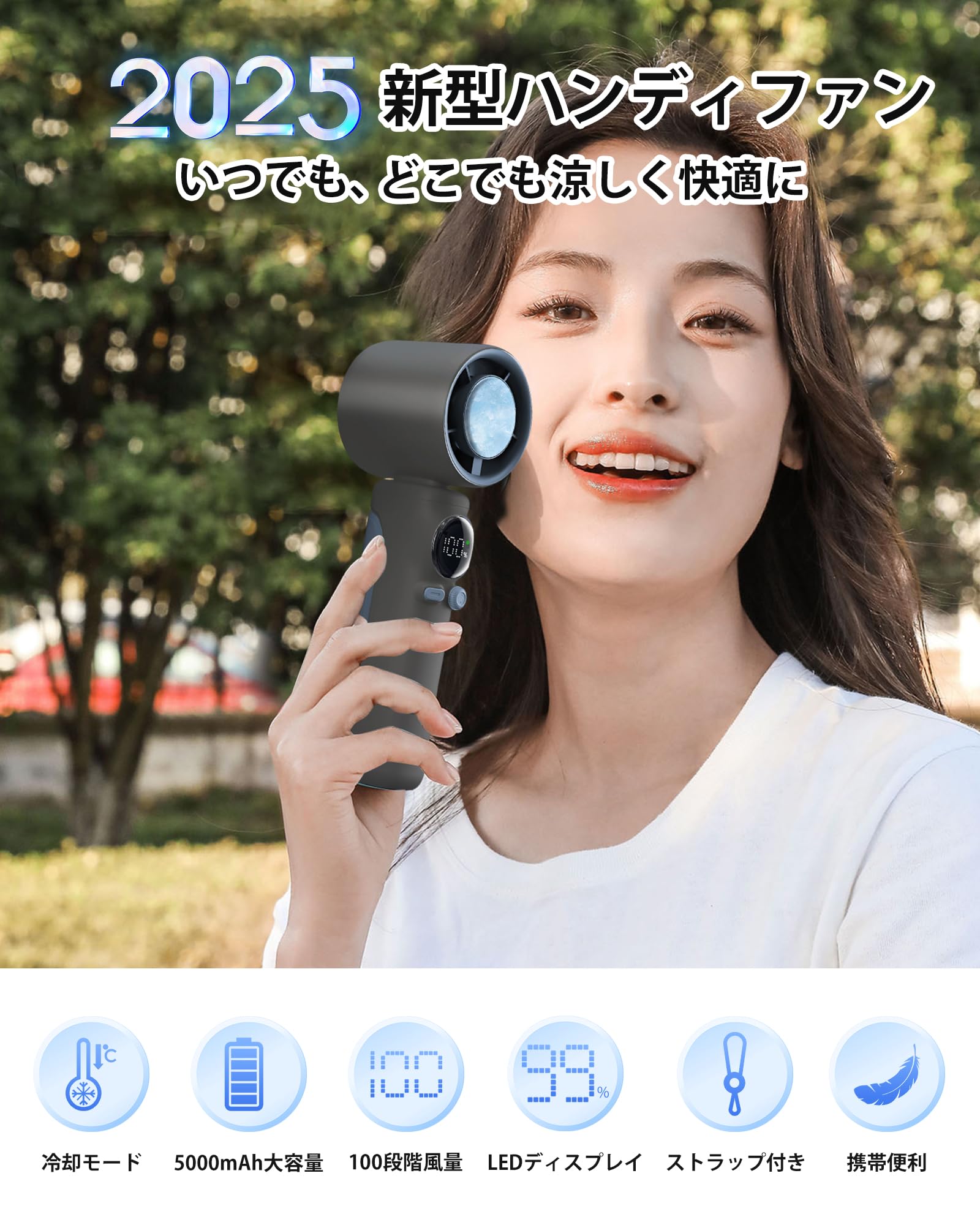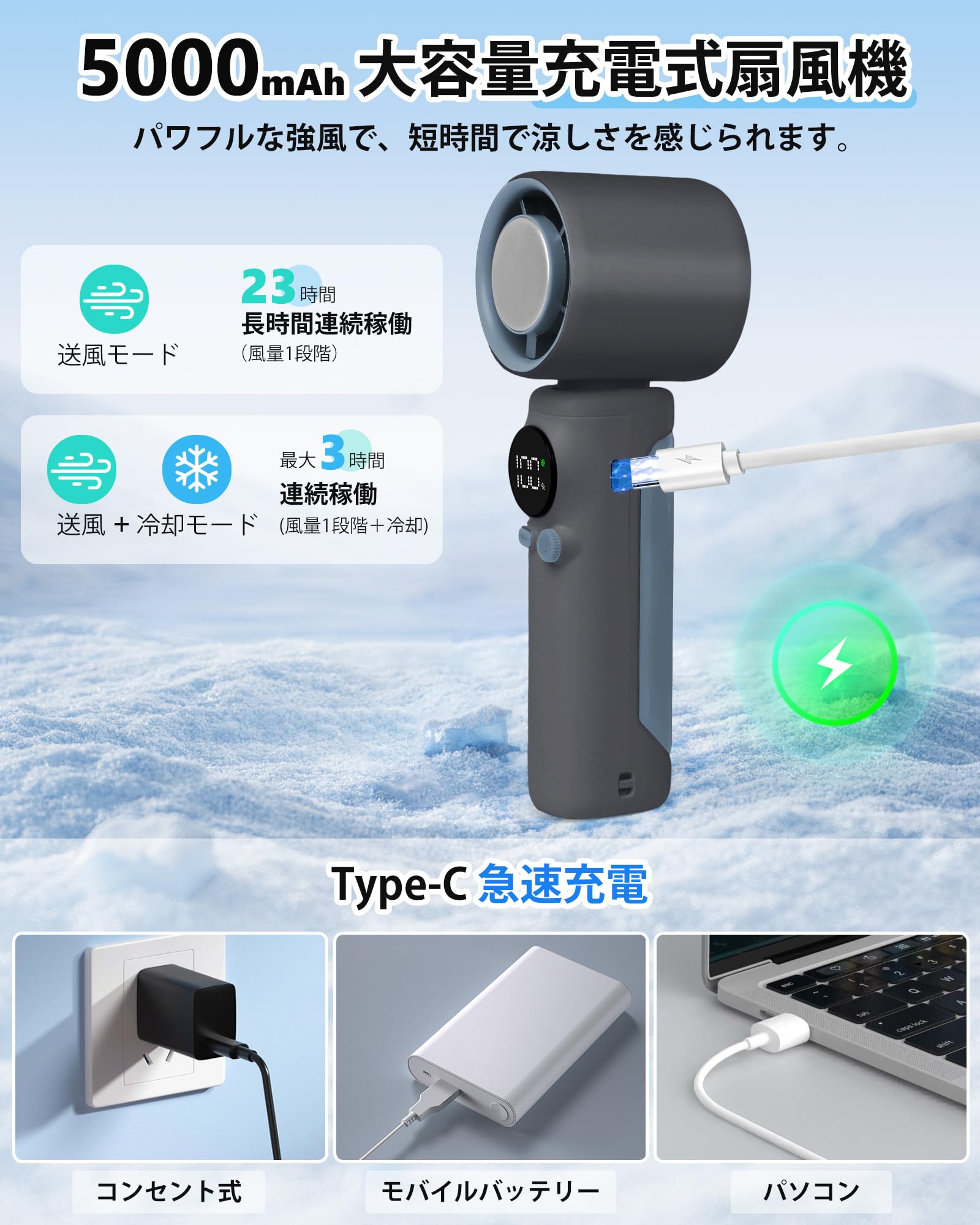 ハンディファン【2025年革新モデル・-20℃瞬間冷却】携帯扇風機 冷感プレート付き 手持ち扇風機 1〜100無段階風量調節 LEDディスプレイ 5000mAh大容量 長時間連続 Type-C 充電式 小型軽量 手持ち/卓上/携帯 ストラップ付き 熱中症対策 ダークグレー