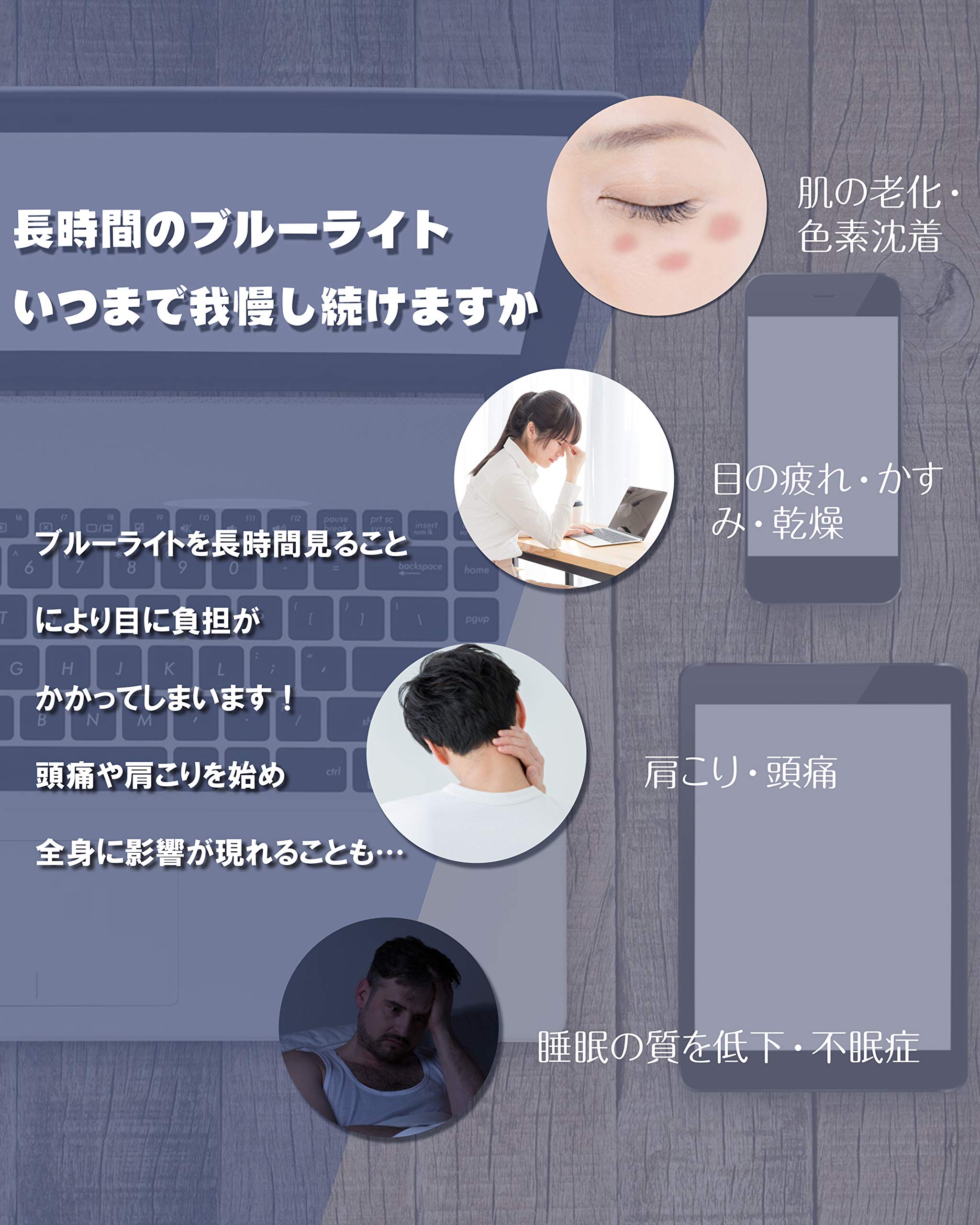 【ブルーライトカット】長時間のブルーライト いつまで我慢し続けますか? ROTAKUMAブルーライトカットメガネは 視力悪化やドライアイ、眼精疲労、メラニンの生成によって起こる浅い睡眠などの原因となるブルーライトや紫外線を防ぎます。大切な目を確実に保護します!