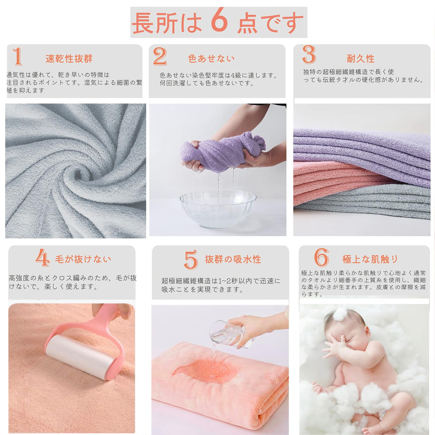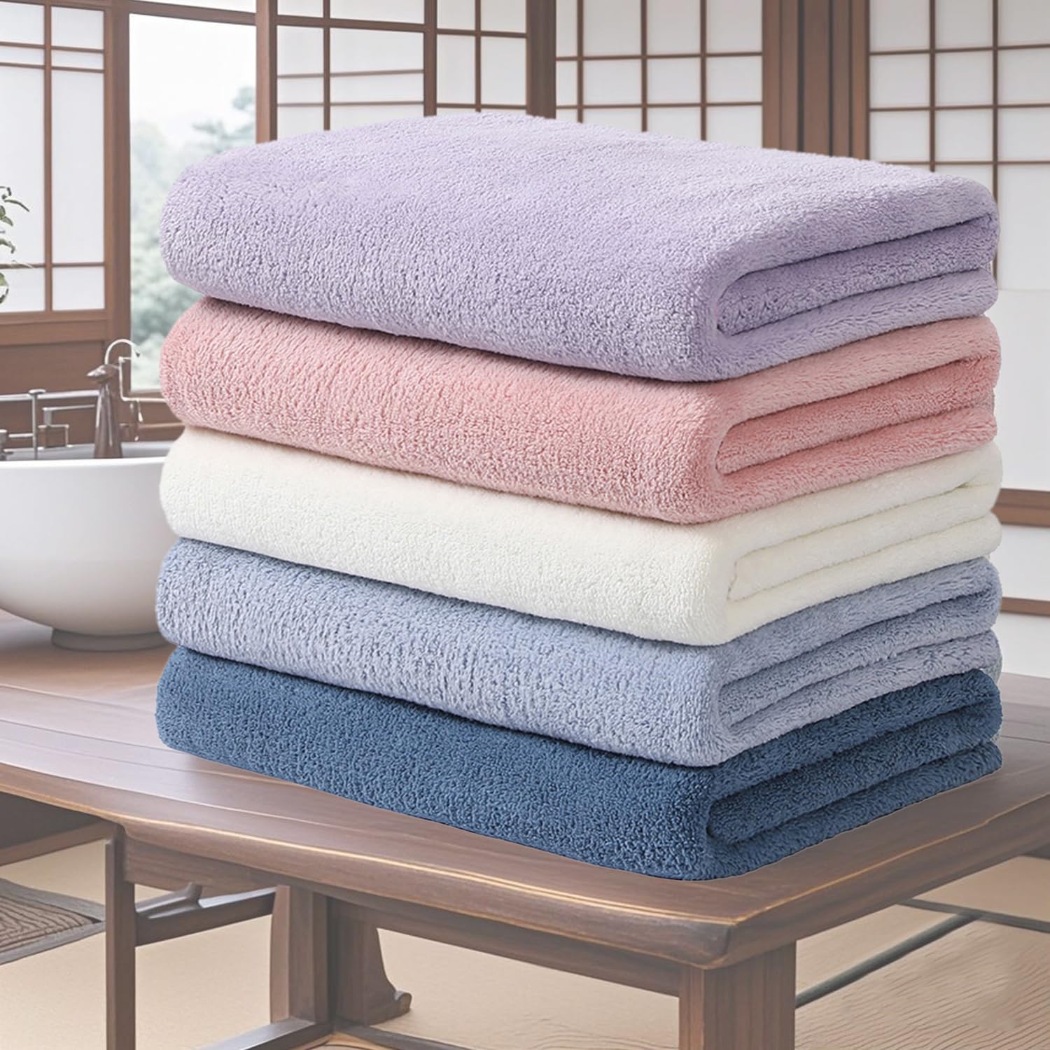 Oseamaidマイクロファイバー バスタオル 大判 5枚セット 吸水速乾 ふわふわ 肌触り 抗菌防臭約60×120cm(ベージュ ピンク パープル ブルー ダークブルー)