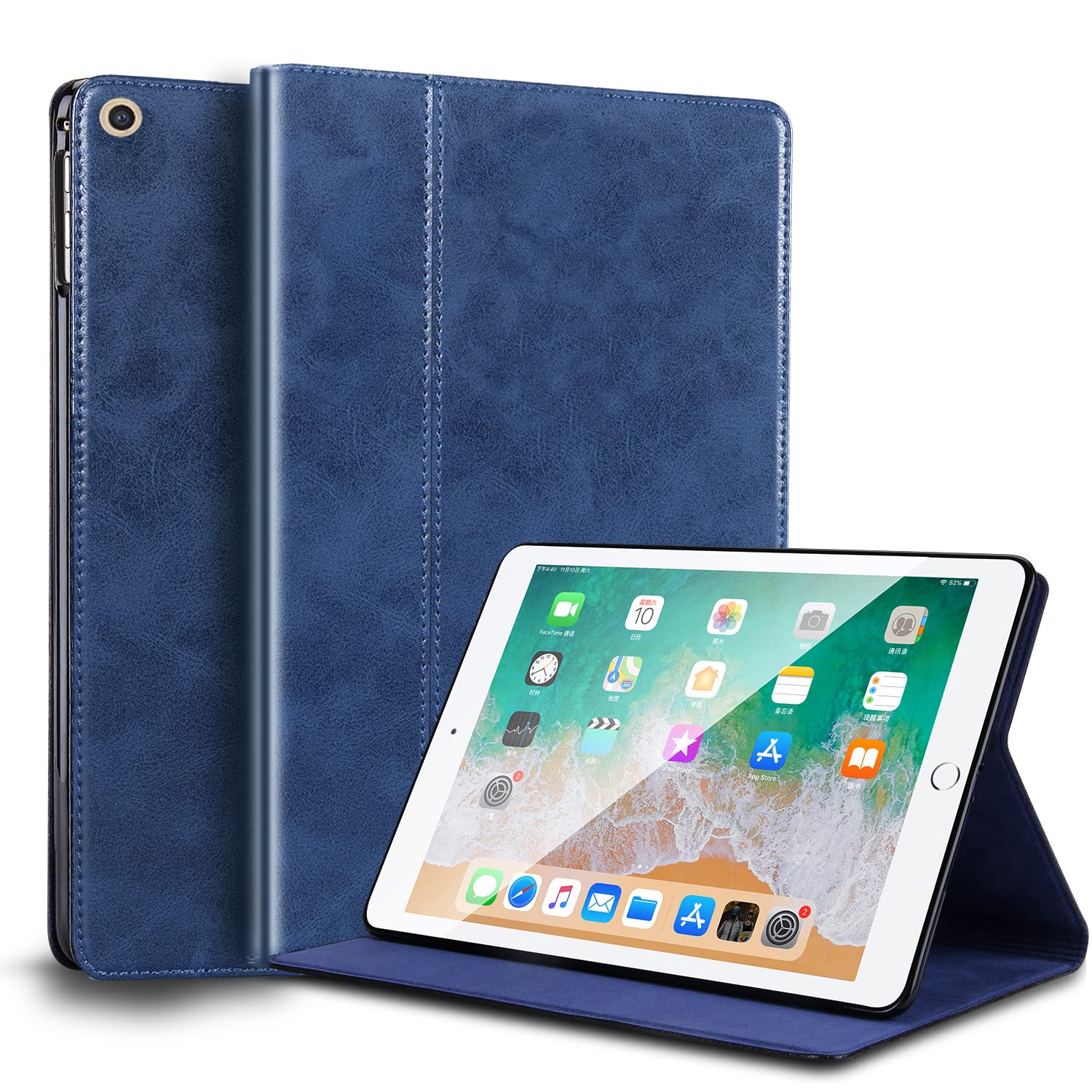 Gexmil ケース iPad 10.2 インチ,9/8/7世代通用 (2021/2020/2019)高級レザー製 耐衝撃性 軽量 防指紋 防滑,オートスリープ/ウェイク,アジャスタブルスタンド,ブルー