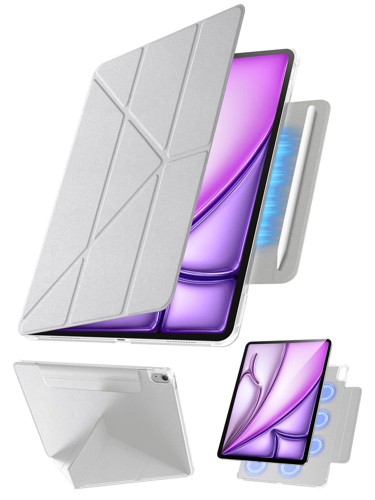 【在庫のみ】【360°全面保護・Y字スタンド】Tekka iPad Air 11インチ ケース M2/M3 (第6/7世代・2025/2024) / 第5世代 (2022) / 第4世代 (2020) & iPad Pro 11インチ ケース (2018)専用 マグネット吸着 隠しペン収納 縦置き・横置き対応 超薄型 軽量 PUレザー オートスリープ 耐衝撃 (ライトグレー)