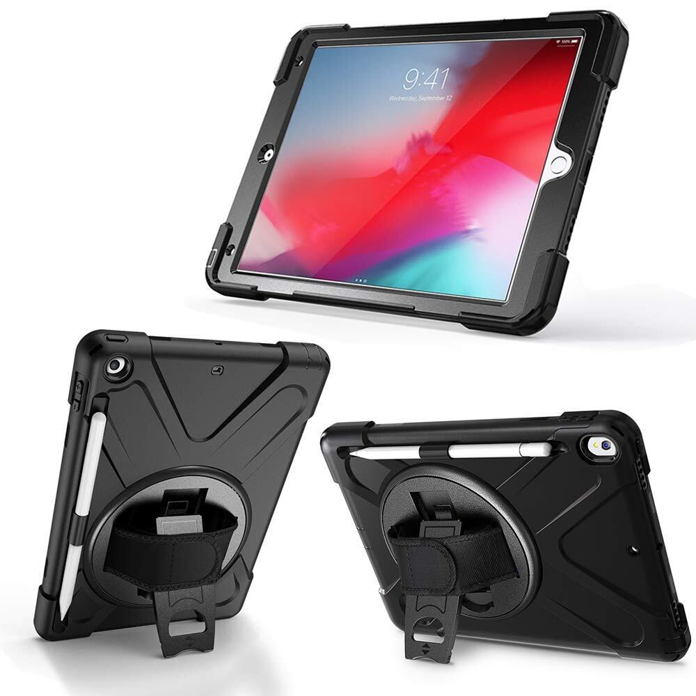 iPad Air3 ケース 2019 耐衝撃/iPad Pro 10.5 2017 ショルダー Herize ペンホルダー ペンシル収納 360度回転 耐衝撃 縦置き 横置き 頑丈 傷防止 ハンドホルダー スタンド 防塵 肩掛け ストラップ 丈夫 ハード iPad 10.5 ケース ブラック
