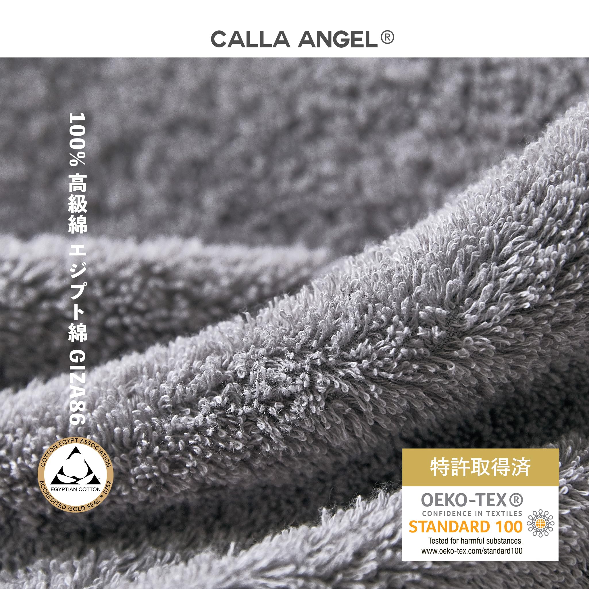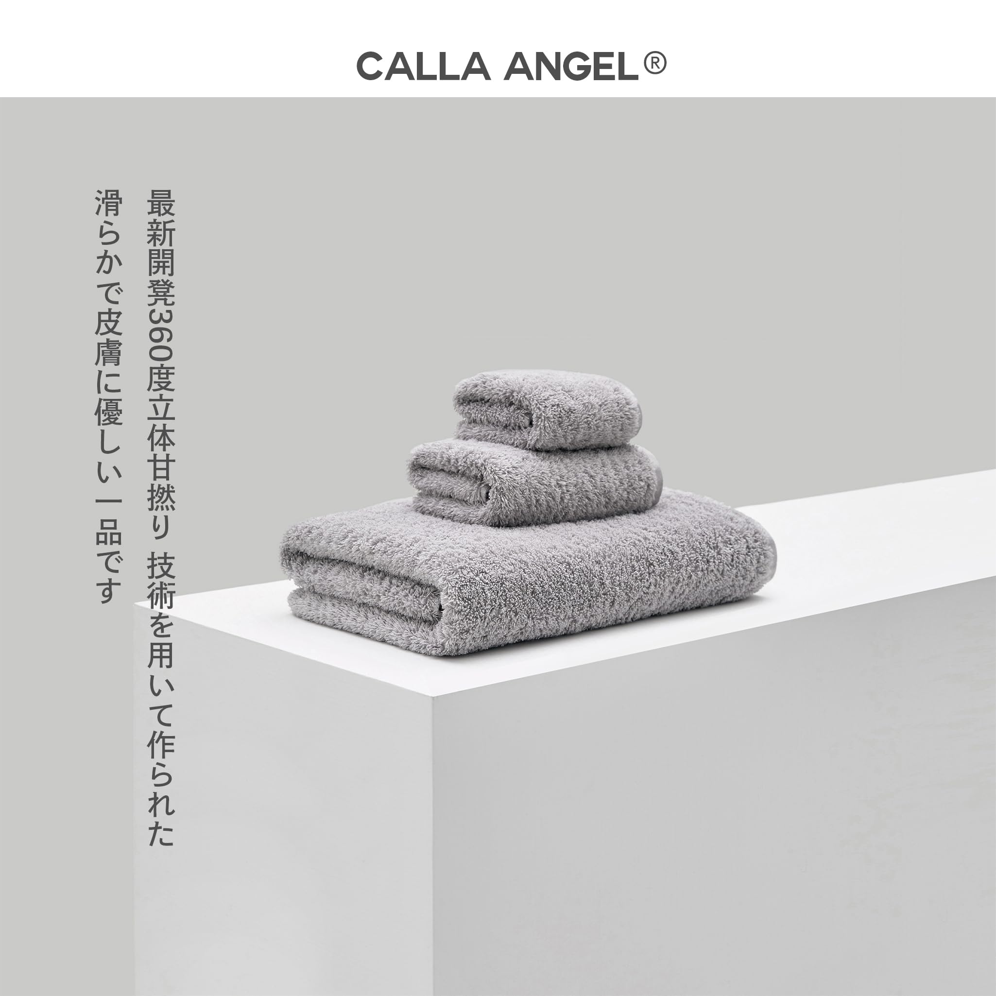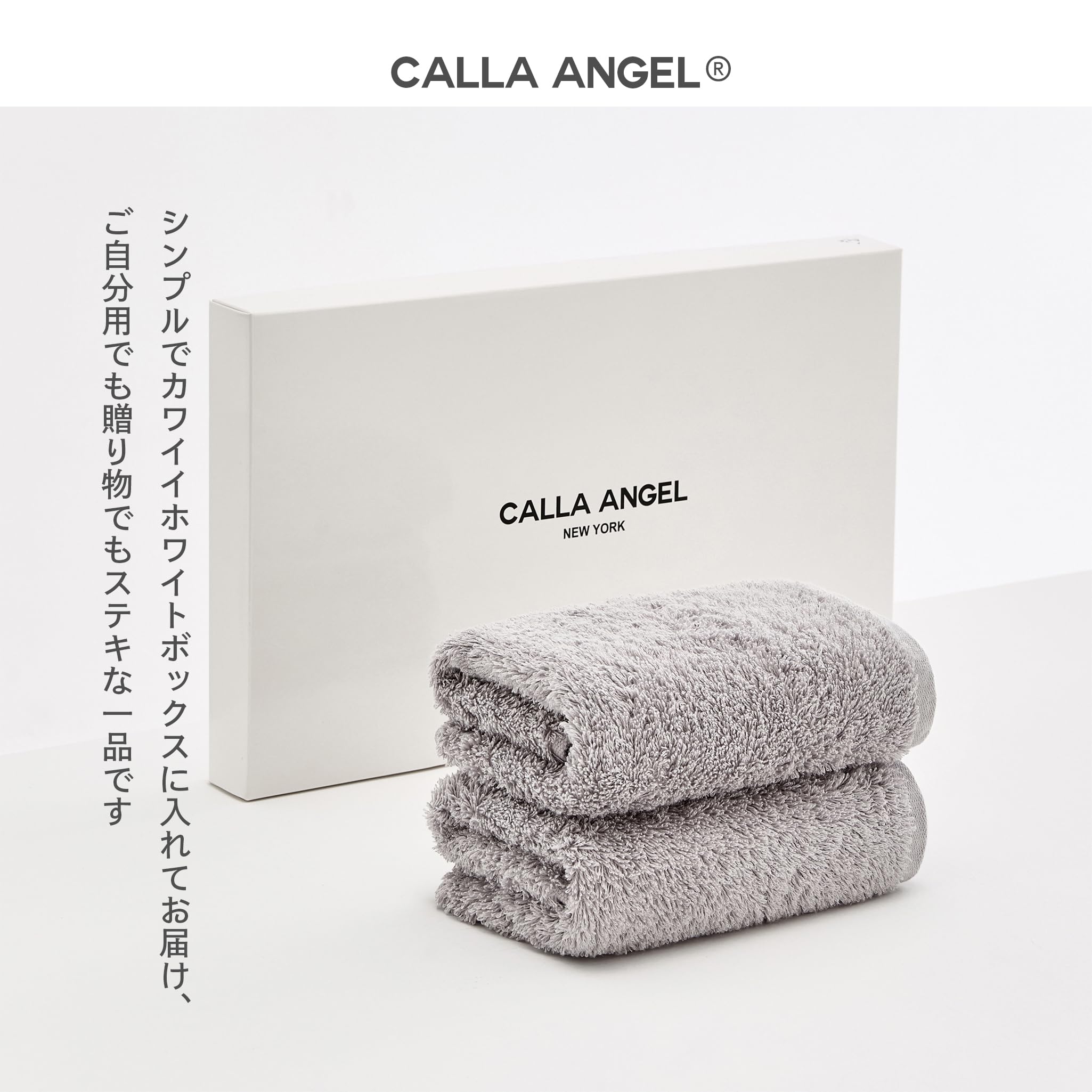 【在庫のみ】Calla Angel New York【エジプト超長綿GIZA86 100%】高級フェイスタオル 2枚組 ふわふわ甘撚り 厚手 高吸水 360度立体パイル仕様 柔らかい 無地 上質コットン OEKO-TEX認証 白箱入り ギフト仕様 フローラシリーズ〔約35×75cm〕アッシュグレイ