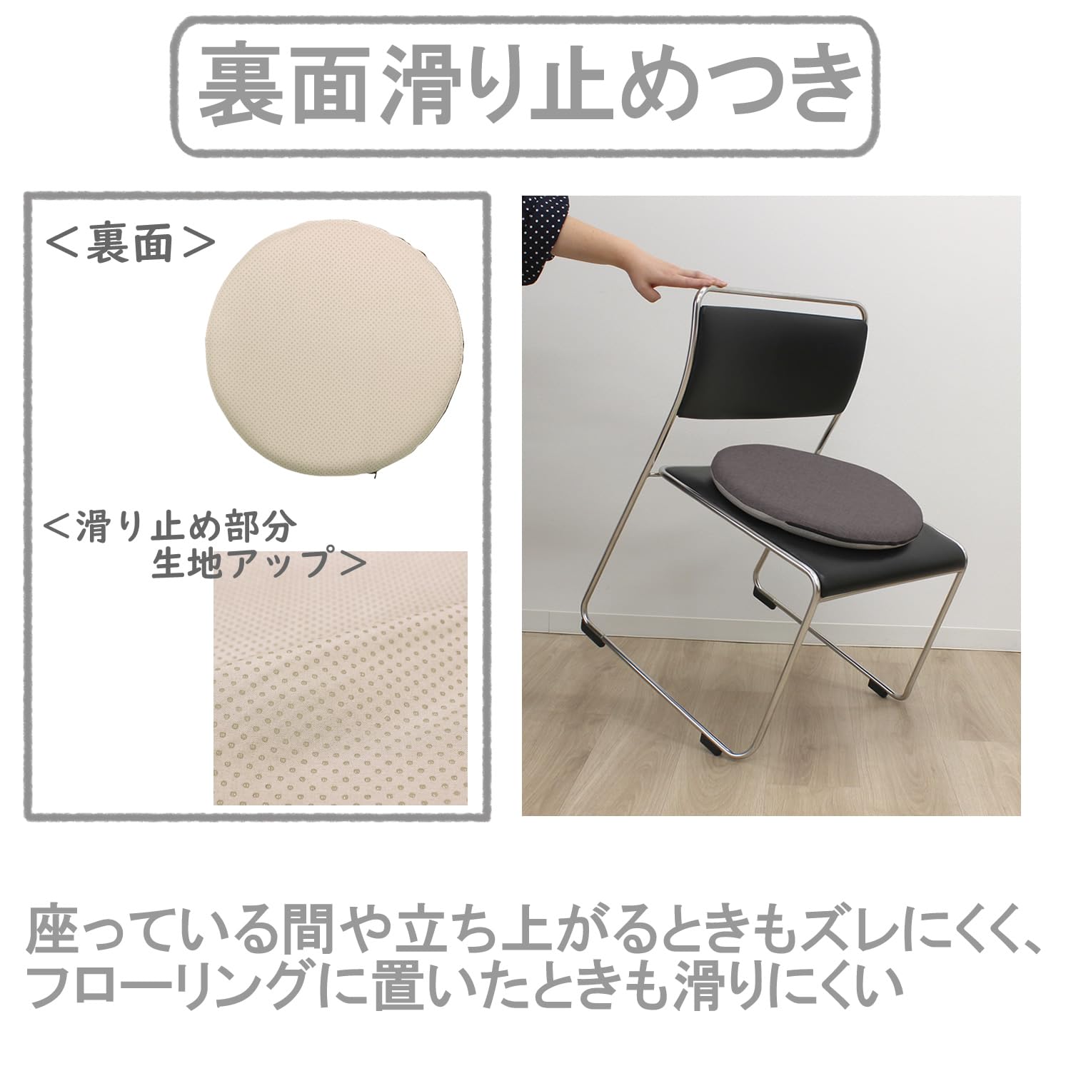 裏面は滑り止めが付き。クッションを置いたとき、座っているとき、立ち上がったとき、ズレにくくなっています。