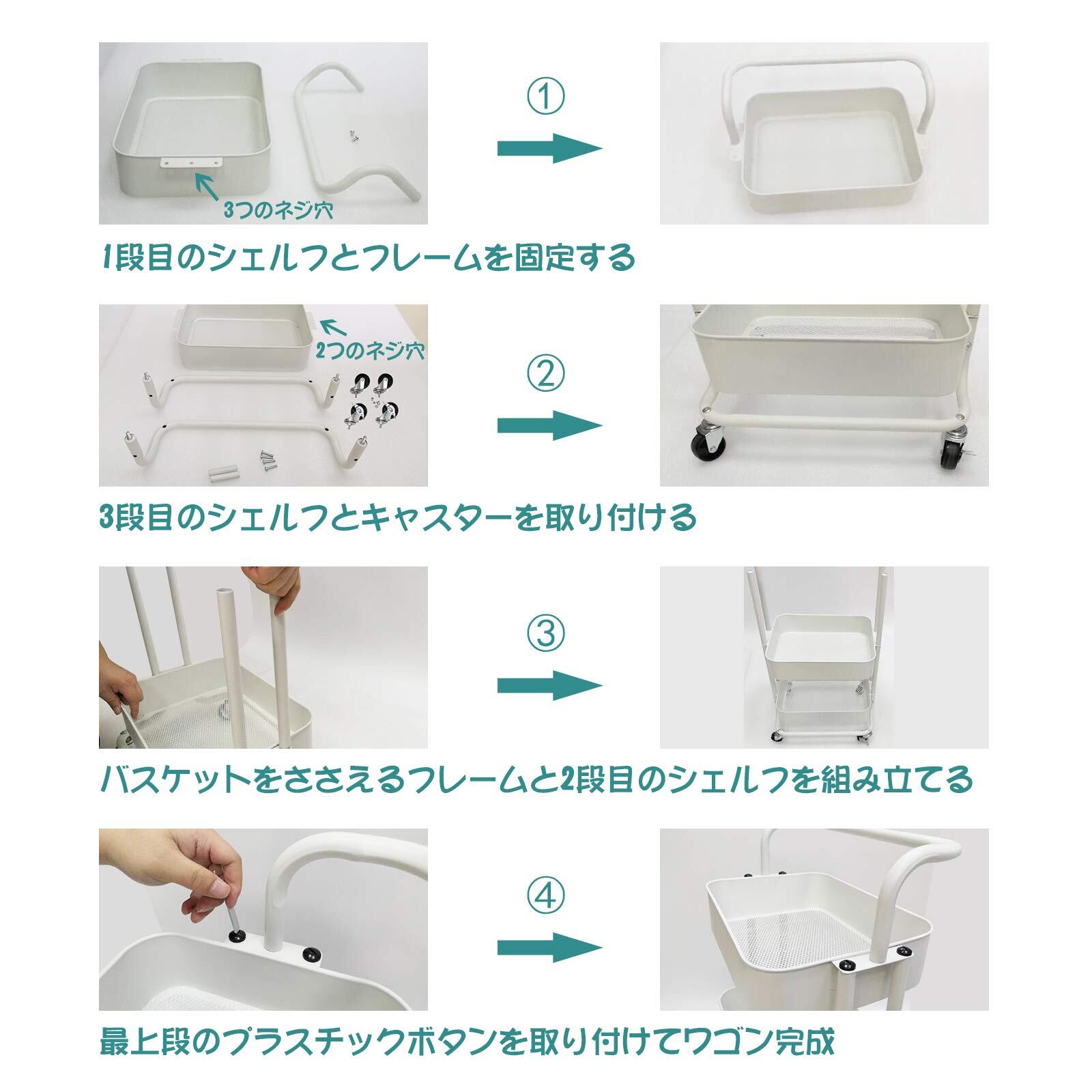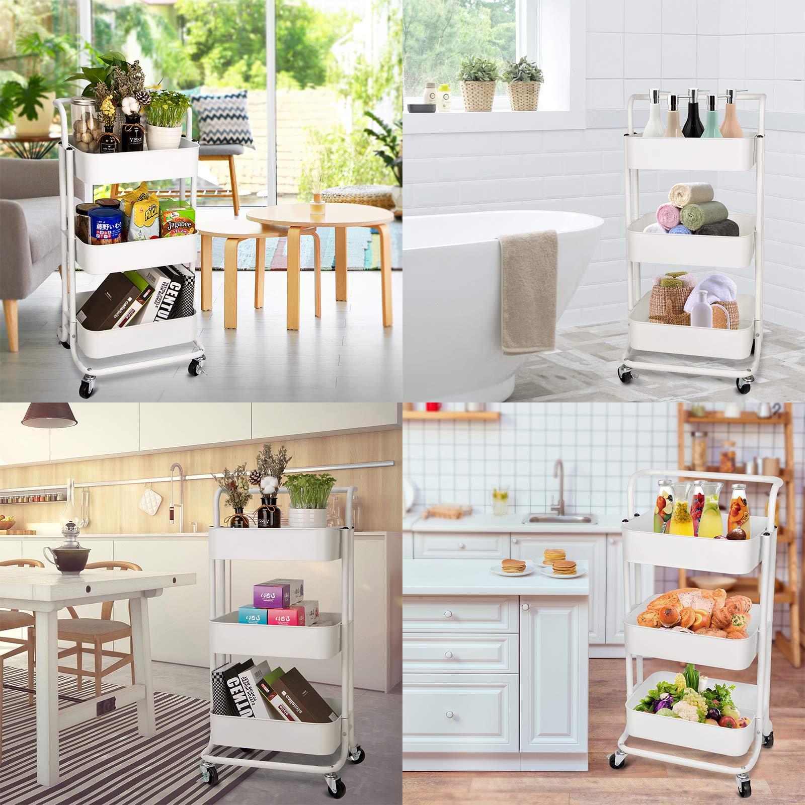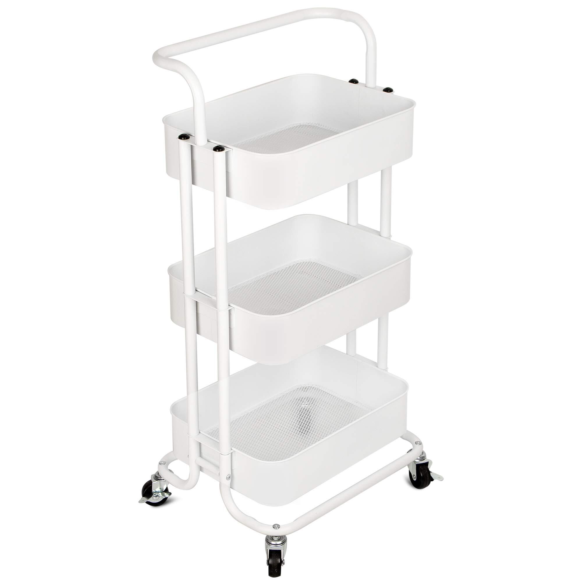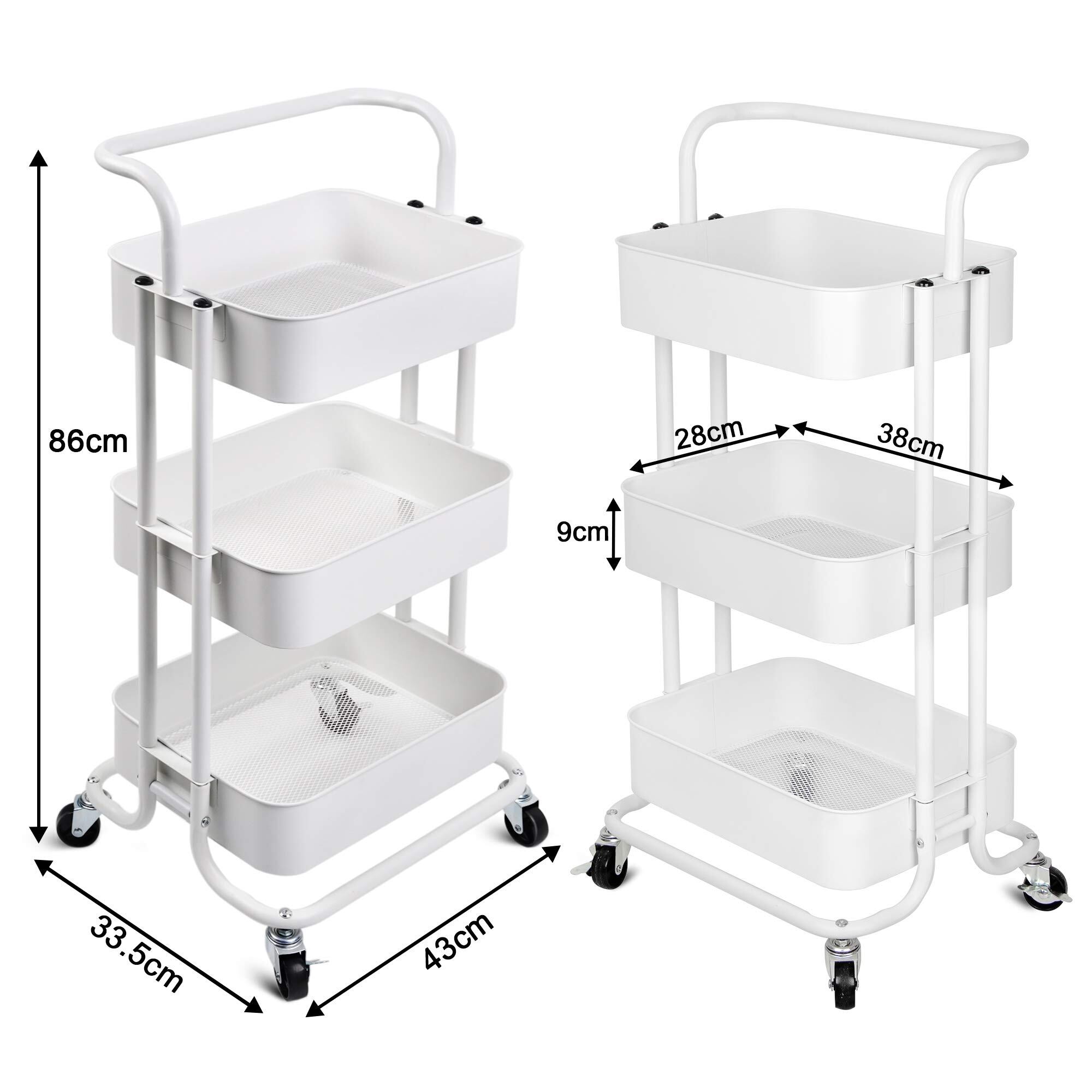 HANKEY キッチンワゴン ベビーワゴン 収納カート バスケットラック 整理棚 キャスター付き 3段 スチール製 頑丈 全体耐重45KG 幅43x奥行33.5x高さ86cm 合金鋼 ホワイト
