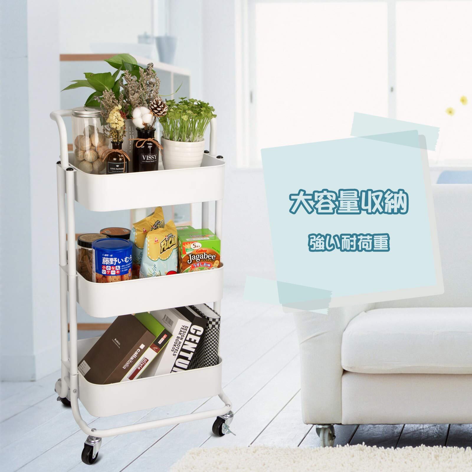 [様々な場所に対応] 三段設計で収納しやすく、キッチン調理品、食品、日用品、散らかりがちな小物の収納や本や雑貨などすべてまとめて収納管理できます。
