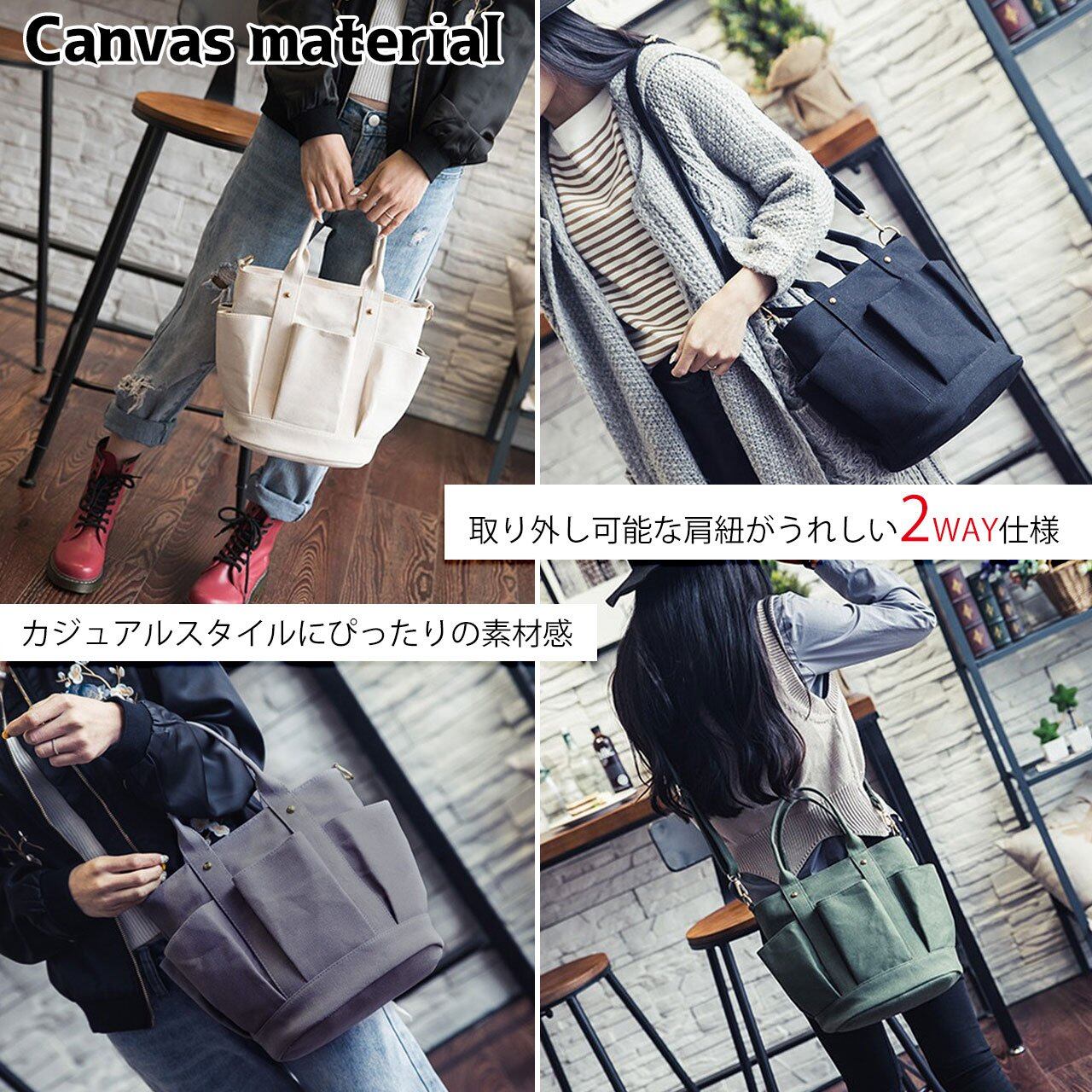 [エンジェルムーン] 帆布 トートバッグ レディース ショルダ 斜めがけ キャンバス ポケット 2WAY カジュアルスタイルに大活躍してくれ、人とは違った個性的なショルダーバッグが欲しいとの声を形にした、キャンバス地のバッグが登場しました。底部分はころんとしていて立体的なフォルム。表にぐるりとオープンポケットが付いて個性的なデザインです。キャンバス地でカジュアルスタイルにぴったりの素材感。お出かけがわくわくする2WAYショルダーバッグです。