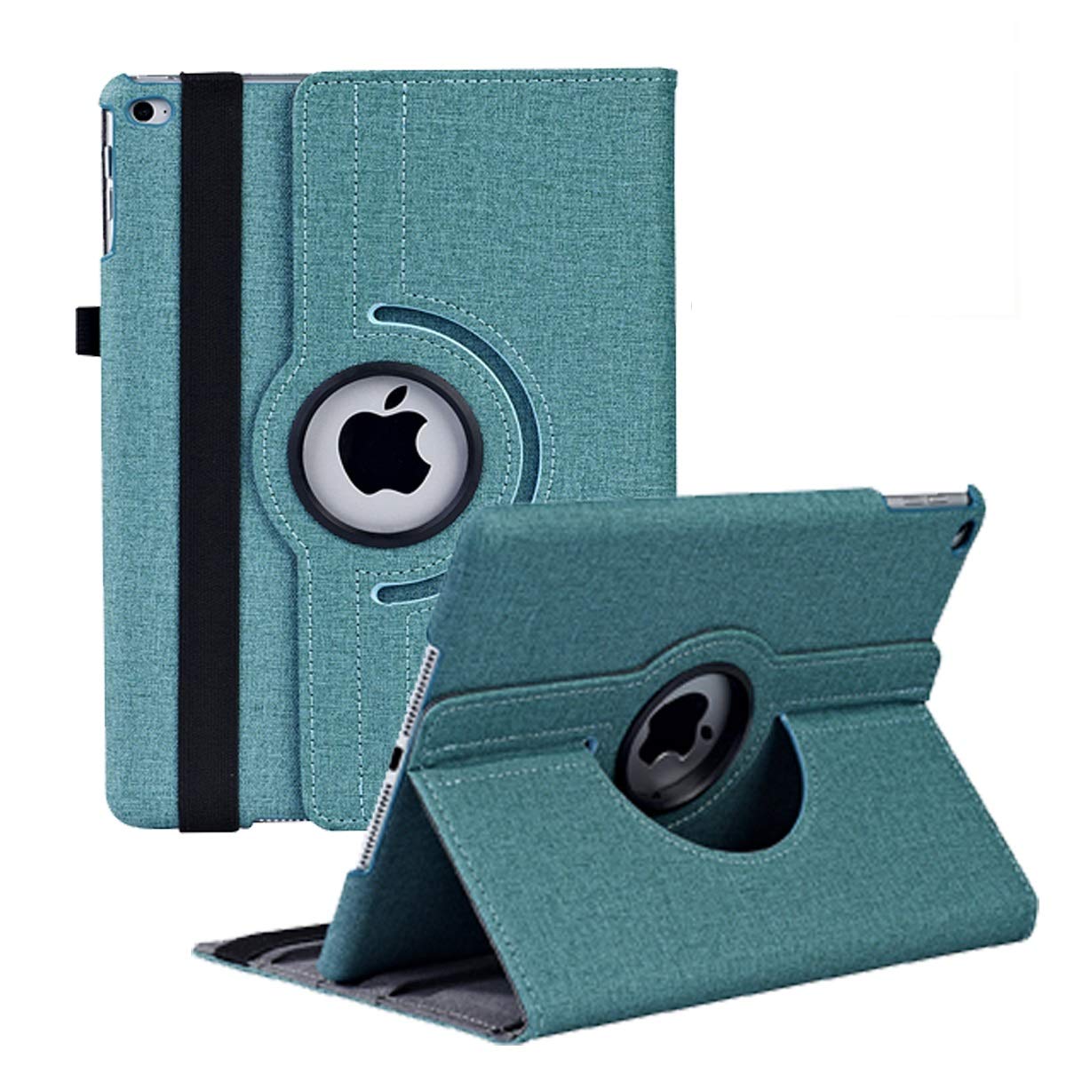 JXCX iPad 9.7 2018/2017ケース 新型(Newモデル)/iPad Air/iPad Air2カバー iPad 9.7インチ(第6、5世代)軽量 手帳型 360度回転スタンド オートスリープ機能 3段階調節可能 固定バンド 脱落防止耐衝撃 耐久性 おしゃれデニム生地 (みどり)