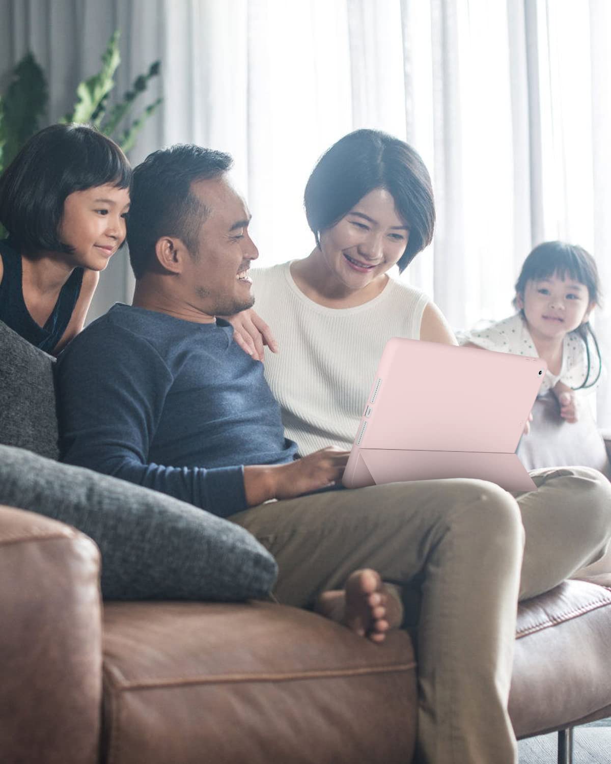 【在庫のみ】Aoub iPad 9.7 インチ 第5 第6世代 (2018/2017) ケース オートスリープ/ウェイク機能対応 Apple Pencilペン収納・ホルダー付 スマートカバー ソフト TPU 薄型 軽量 耐衝撃 三つ折りスタンド (ピンク)