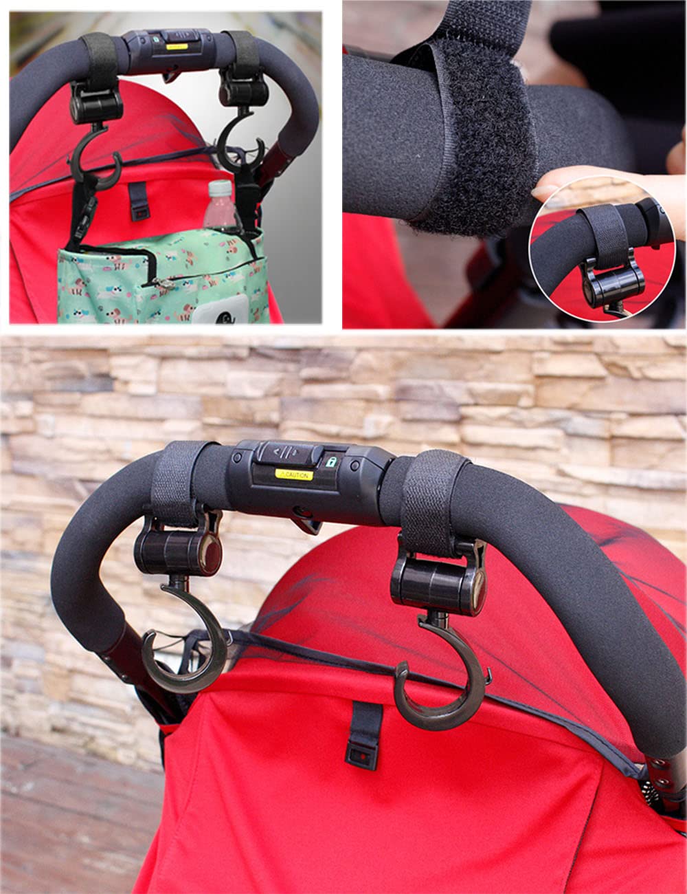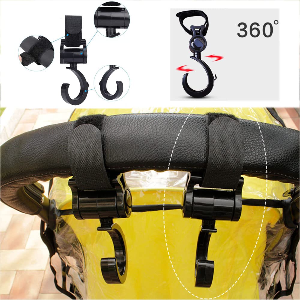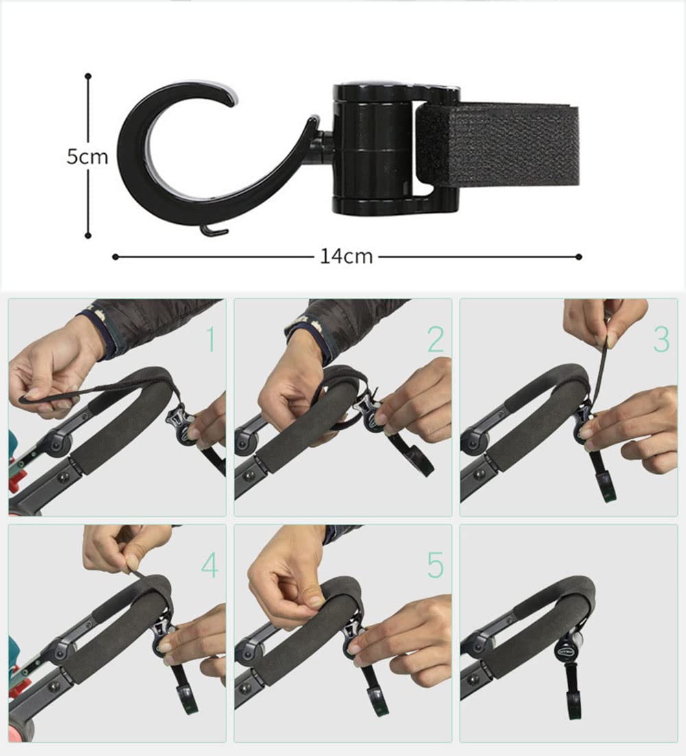 Natiform ベビーカー 荷物 フック 2個セット 便利グッズ ホルダー ペットカート フック アクセサリー 耐荷重20kg ベビーカー フック 360度回転 マジックテープ付き s字フック