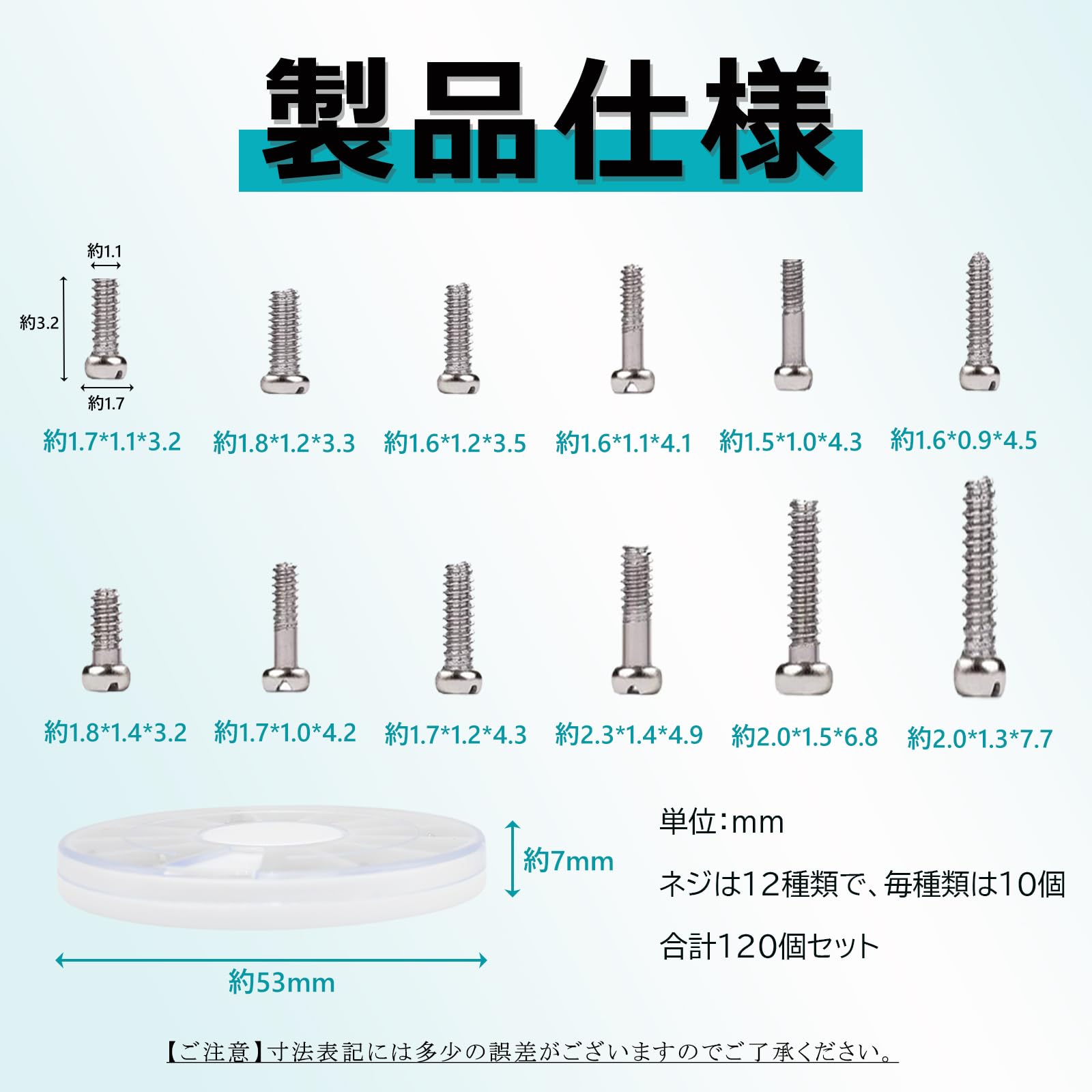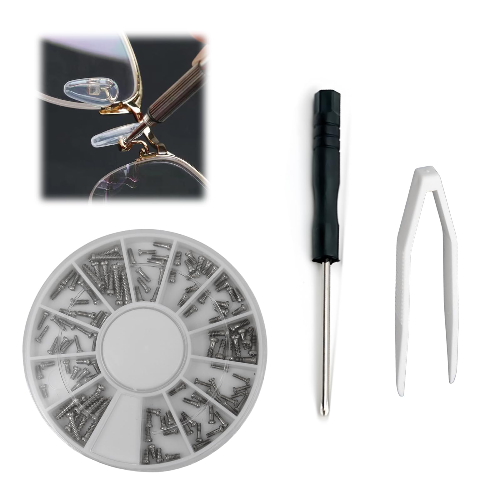 【数量限り】メガネ ネジ メガネ用ネジ サングラス用 12種類 120個セット/時計修理 交換用 修理キット ツール パーツ 多機能 眼鏡用 交換用 極小 ピンセット付き 補修 精密 (120)