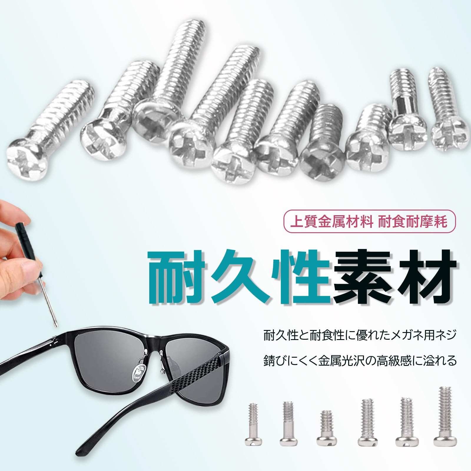 【耐久性素材】上質な金属材料でできたメガネ用ネジは耐久性と耐食性に優れ、高硬度が特徴です。丈夫で壊れにくく、長期間使用しても錆びにくく、金属光沢の高級感に溢れる可能です。