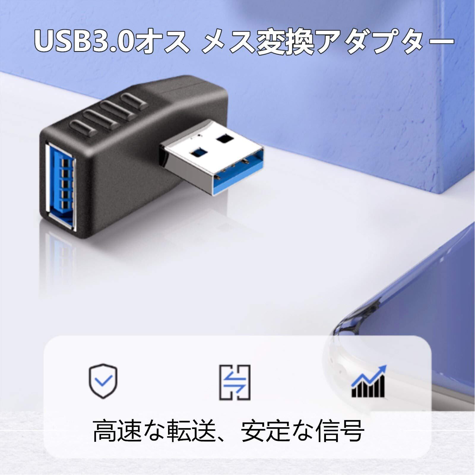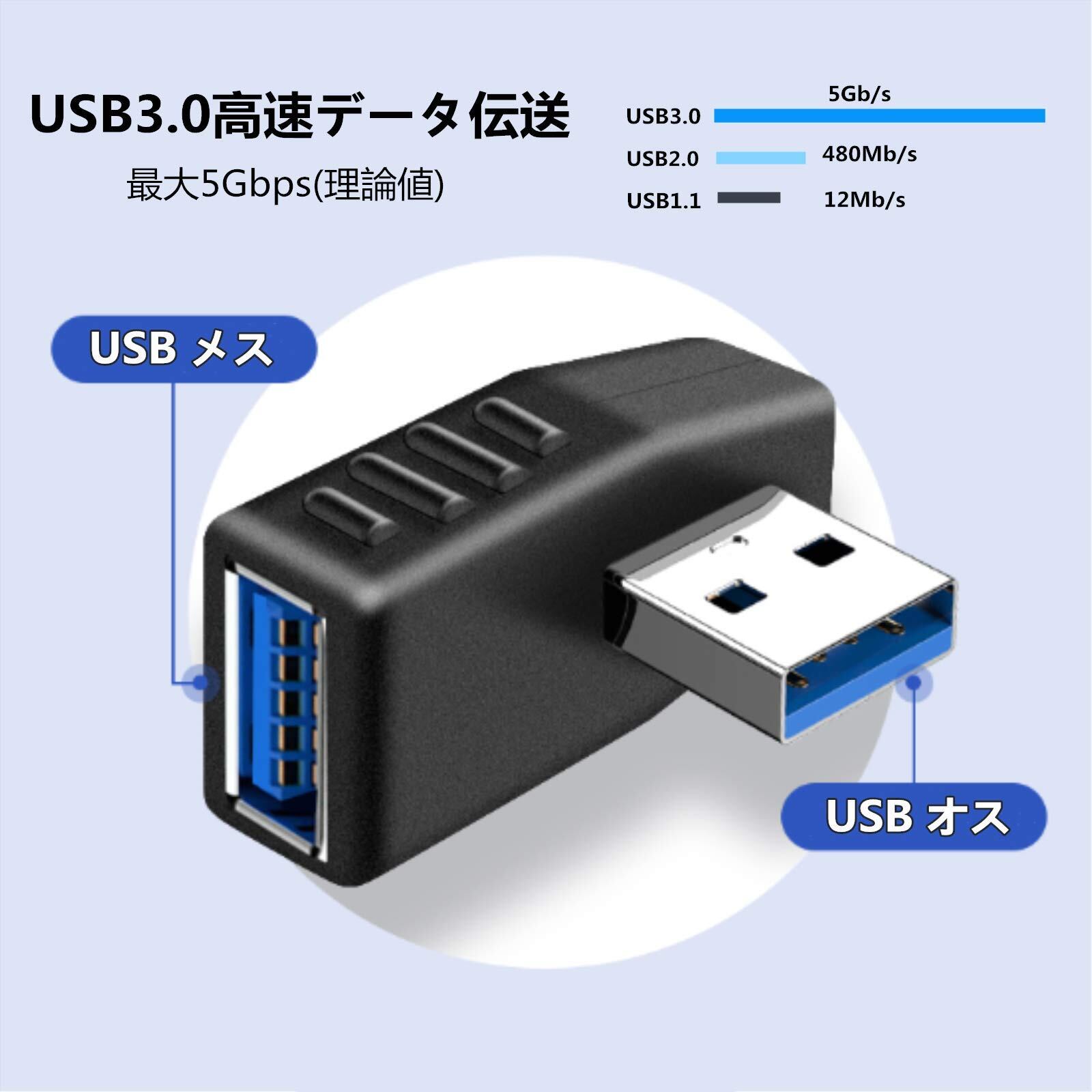 USB コネクタ 直角 アダプタ 左向き 右向き USB 3.0 アダプタ 90度 L型 タイプA オス-タイプA メス 方向 変換 延長 コネクタ 4個セット