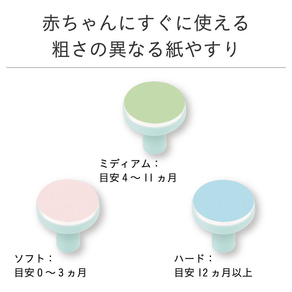 ●ベビーの月齢や爪の状態にあわせて選べる3種類のアタッチメント。