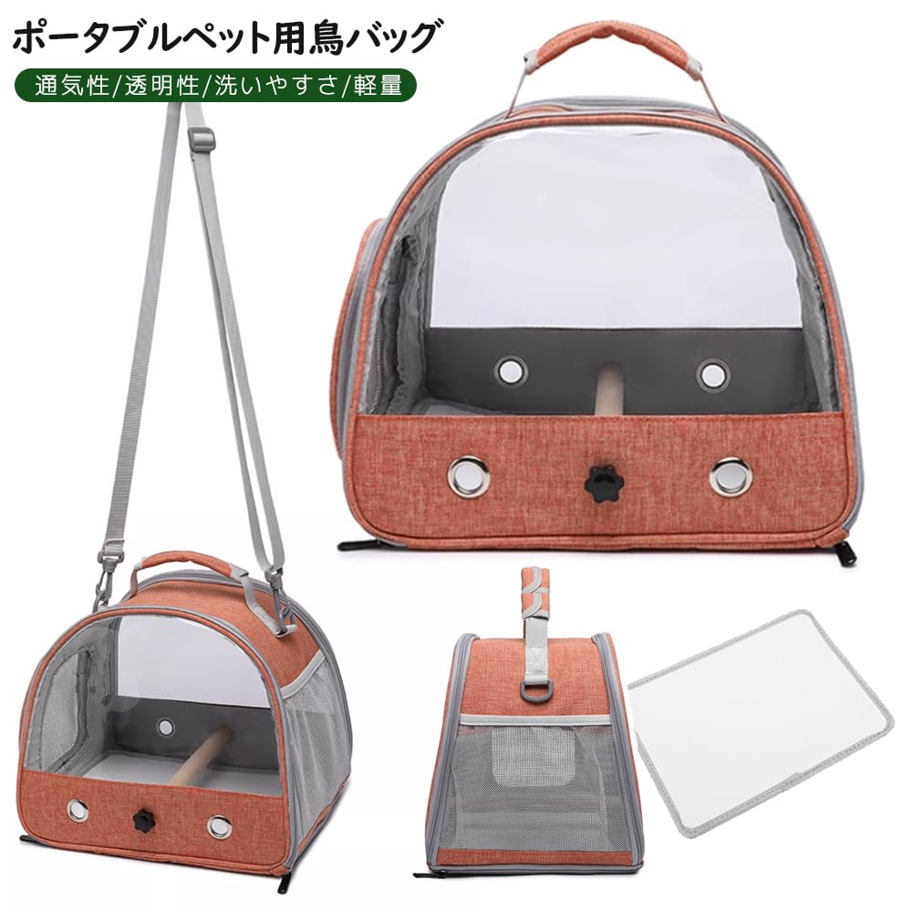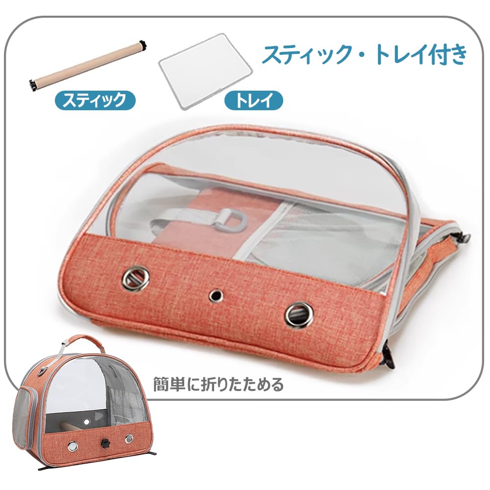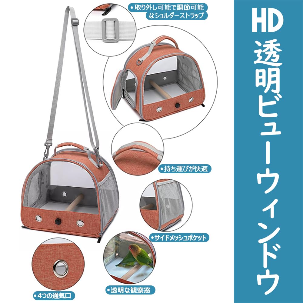 【特価処分】JKOOK 鳥キャリー 鳥バッグ ショルダーかけ インコ キャリー 鳥かご キャリーバッグ 鳥用 お散歩ケージ お出かけ バードキャリア 外出 持ち運び 止まり木付き 折り畳み式で収納ラクラク 透明で通気メッシュ 斜めかけ取り外し可能 外出や旅行に最適 通院や移動も安心 (オレンジ)