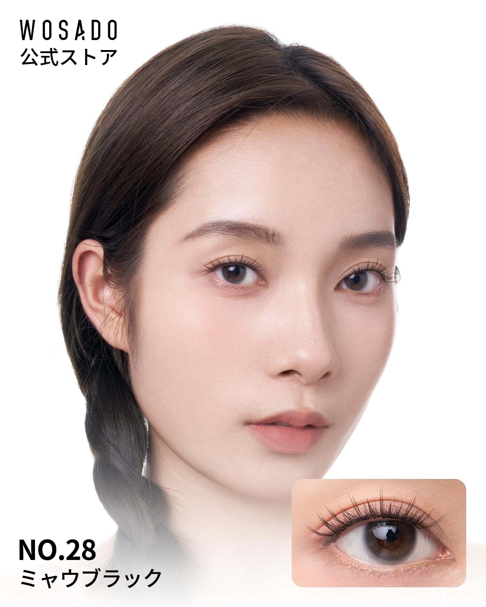 WOSADO マグネットつけまつ毛、No.28ミャウブラック、磁気 つけまつげ 、接着剤不要、ふんわり、すっぴん感、再利用可能、薄いメイク向き