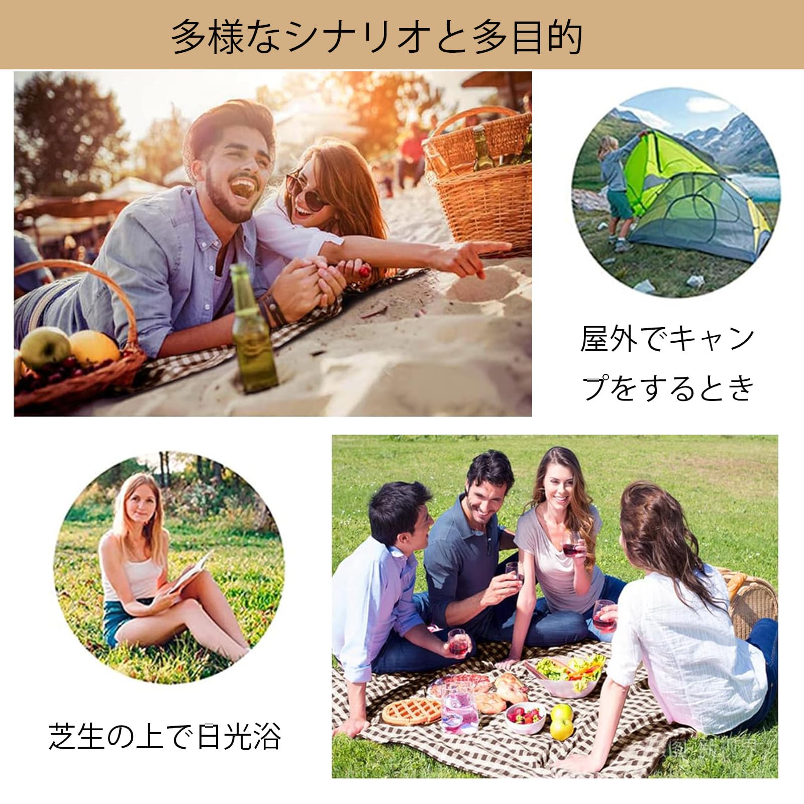 【多機能ピクニックマット】日光浴や自宅でのマットとして、車内の愛犬用のカーカバーとして使用して、車を清潔で乾いた状態に保つこともできます。また、レジャーシートはピクニックだけでなく、ビーチ、バーベキュー、キャンプにも適しています。