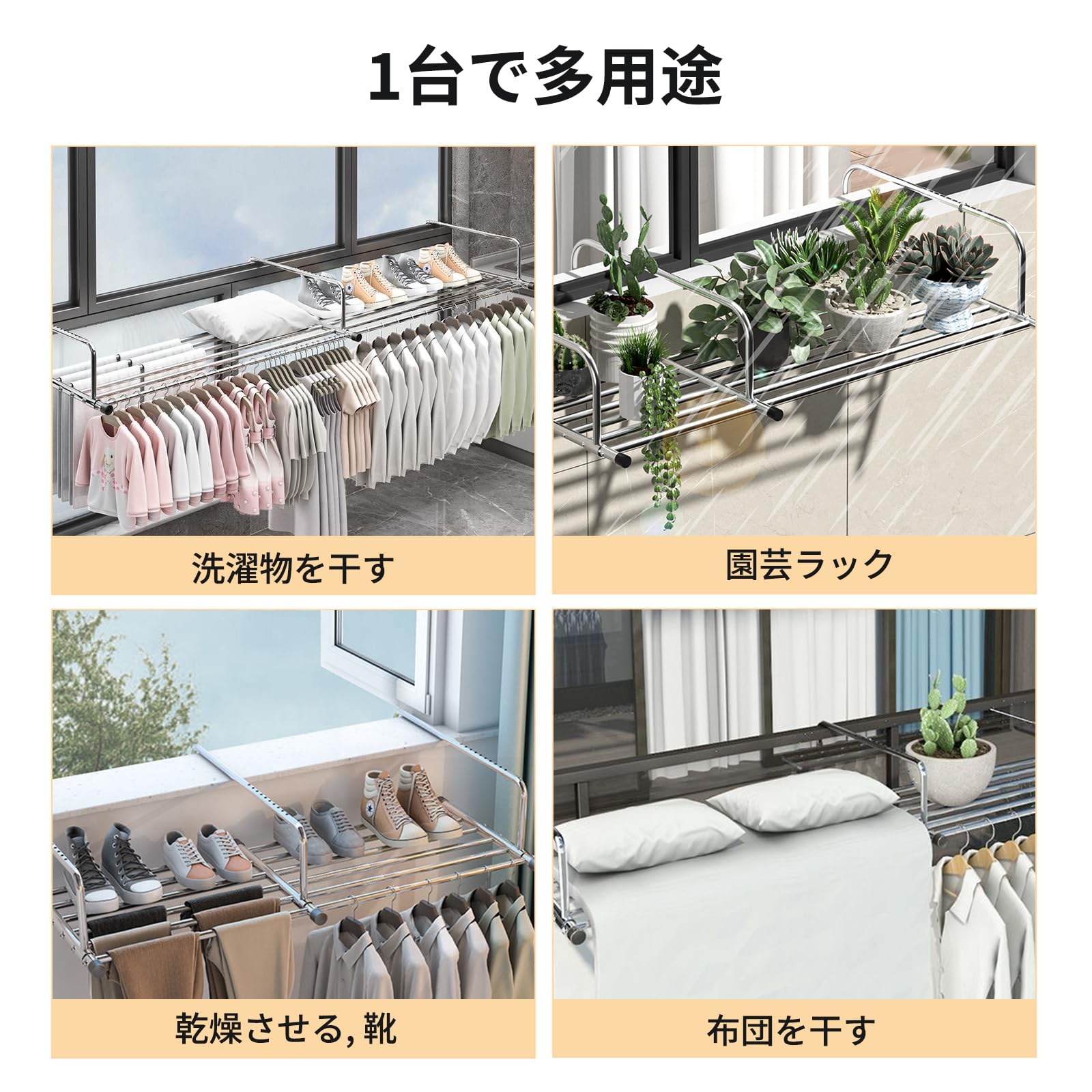 物干し ステンレス ベランダ物干し 折りたたみ 屋外物干し伸縮可能 78-140cm ベランダ用物干し ベランダ 洗濯物干し 引っ掛けタイプ 乾燥ラック 壁掛け式 物干し台・物干しラック 耐荷重25kg 組み立て不要 タオルハンガー 物干し台 洗濯ハンガー 省スペース 室内 屋外 盆栽置きと 隙間収納