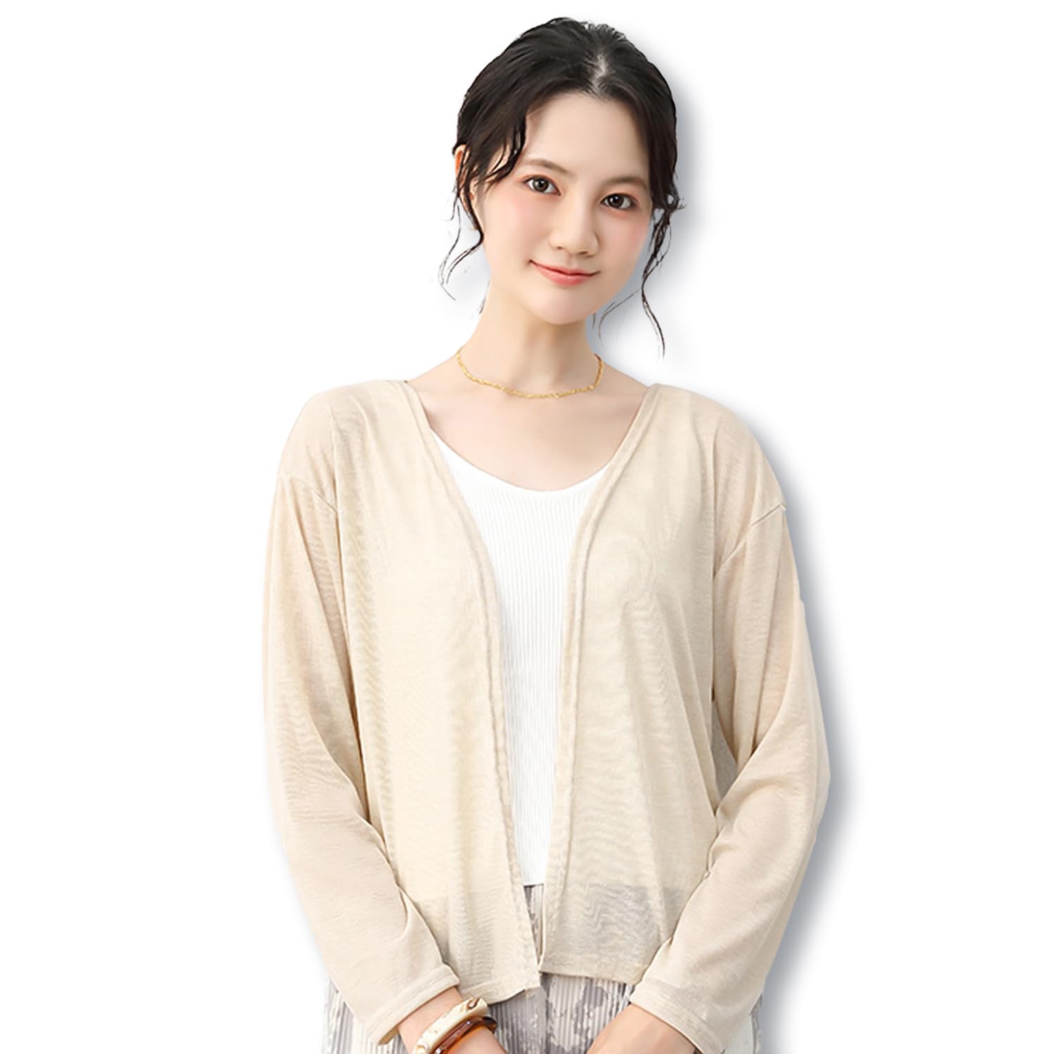 ♪【日焼け止め・冷房対策】肌の露出が気になる夏にぴったり、薄手の長袖サマーカーディガンが登場しました!日差しの強い時期の屋外でしっかりUVカット、紫外線からお肌を守ります。日傘や帽子と合わせて使えば、さらに効果的な日焼け対策ができます。UV対策だけでなく、ヒヤッとした冷房付きの室内にも役立ちます。