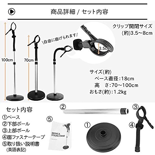 両手フリー ドライヤースタンドホルダー スタンド 使いやすい 360度回転可能 高さ調節可 ヘアドライヤーラック ペット用 犬 猫 ドライヤーホルダー ドライヤー固定 ヘアードライヤースタンド アーム 伸縮 髪 乾燥