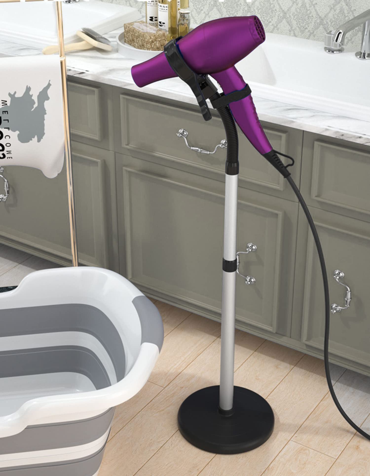 高さと角度を自由に調節できるヘアドライヤースタンドホルダー。