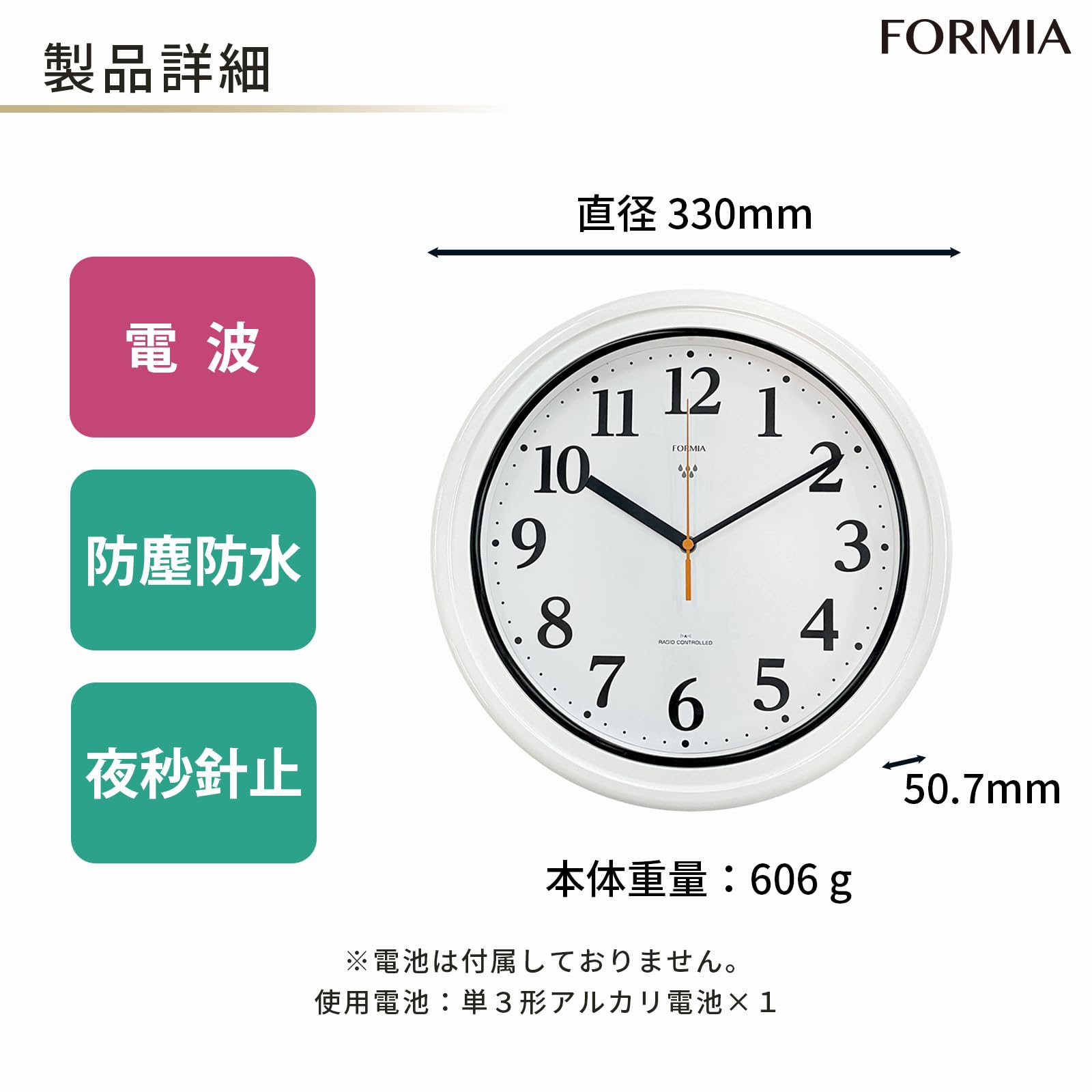 Formia(フォルミア) 電波時計 バスクロック 掛け時計 アナログ 防水 防塵 プラスチック風防 見やすい 大きめ 33cm 夜間秒針停止 IP67 生活防水 お風呂 保土ヶ谷電子販売 ホワイト HWP-003RC
