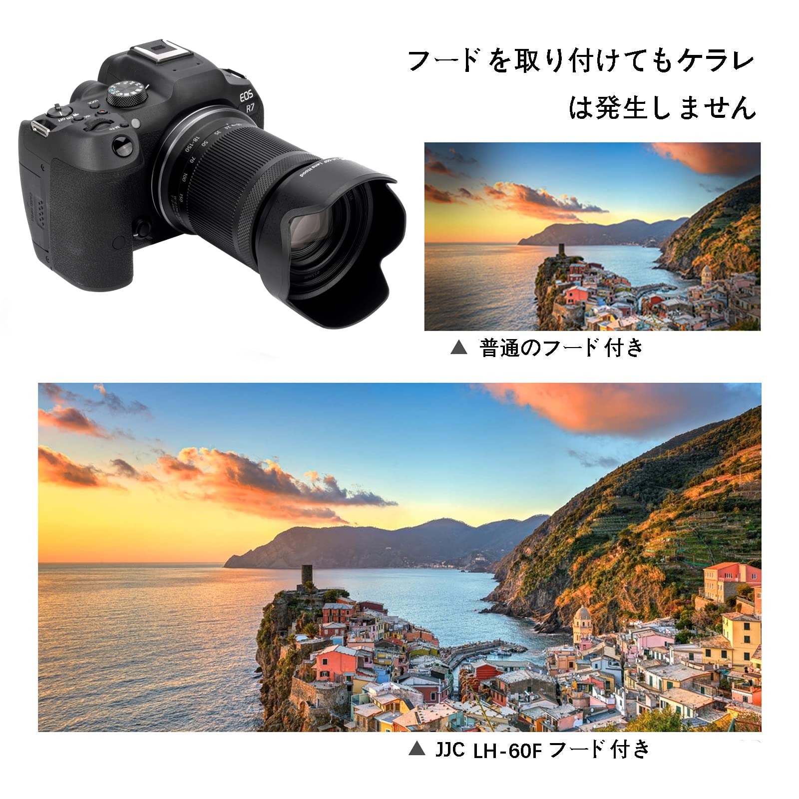 JJC EW-60F 可逆式 レンズフード Canon R7 / R10 + RF-S 18-150mm F3.5-6.3 IS STM & Canon EF-M 18-150mm F3.5-6.3 IS STM レンズに対応 Canon EW-60F レンズフード 互換
