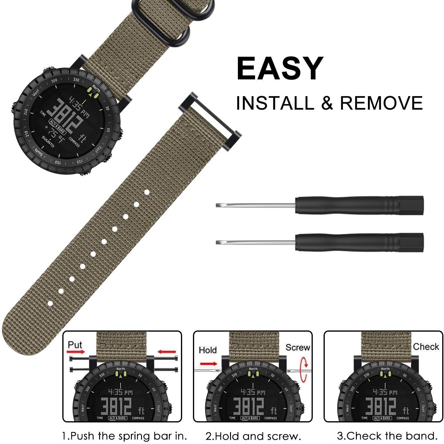 for Suunto Core バンド ベルト スポーツバンド 交換用ストラップ ウォッチベルト ソフト ナイロン製 調節可能 通気 おしゃれ(カーキ)