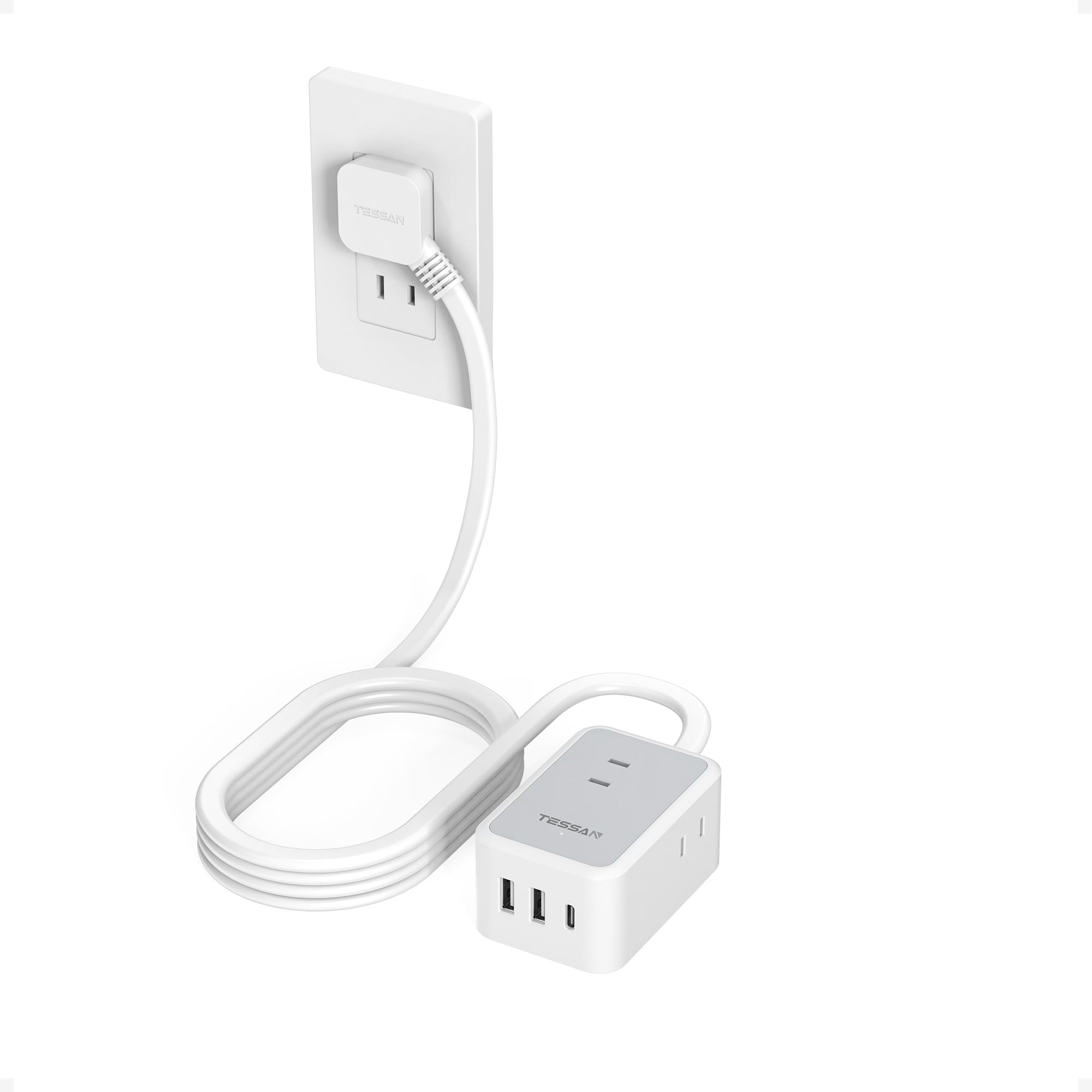延長コード 3m 薄型 電源タップ usb コンセント たこあしコンセント テーブルタップ TESSAN 3個AC 1個タイプC 2個タイプA 電源コード oa type-c タコ足配線 蛸足 隙間