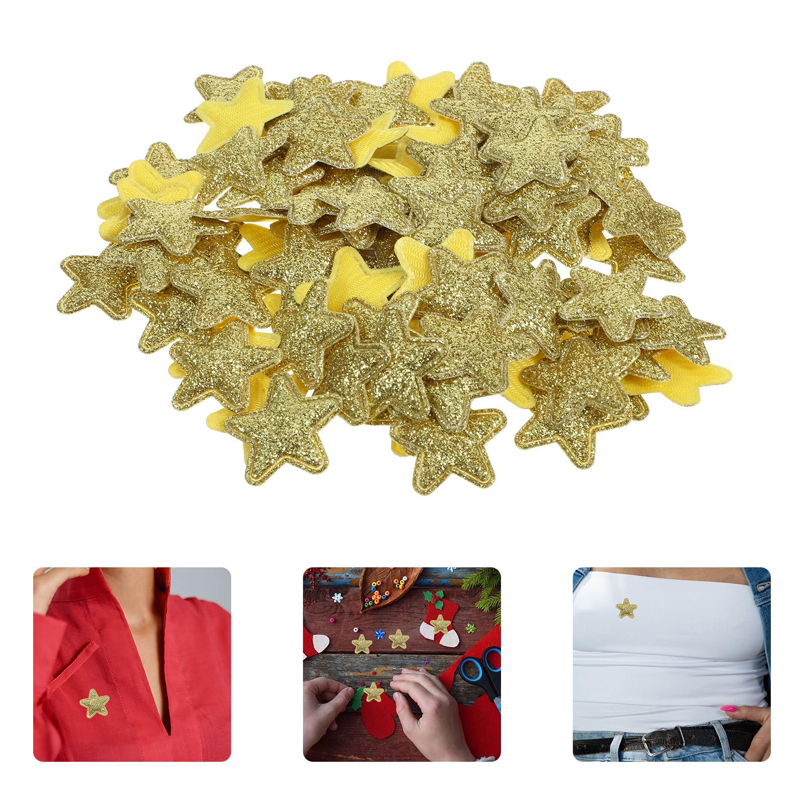 ledmomo ワッペン 100枚 アップリケ 黄色星 刺繍 五芒星 クリスマス飾り ワッペン 星 キラキラ星形スパンコール 女の子 男の子 ミニ クリスマス DIY 靴の装飾用 刺繍 手芸