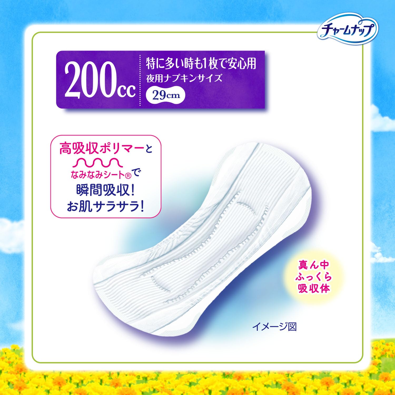 吸収量:200cc 長さ:29cm サイズ目安:夜用ナプキンサイズ