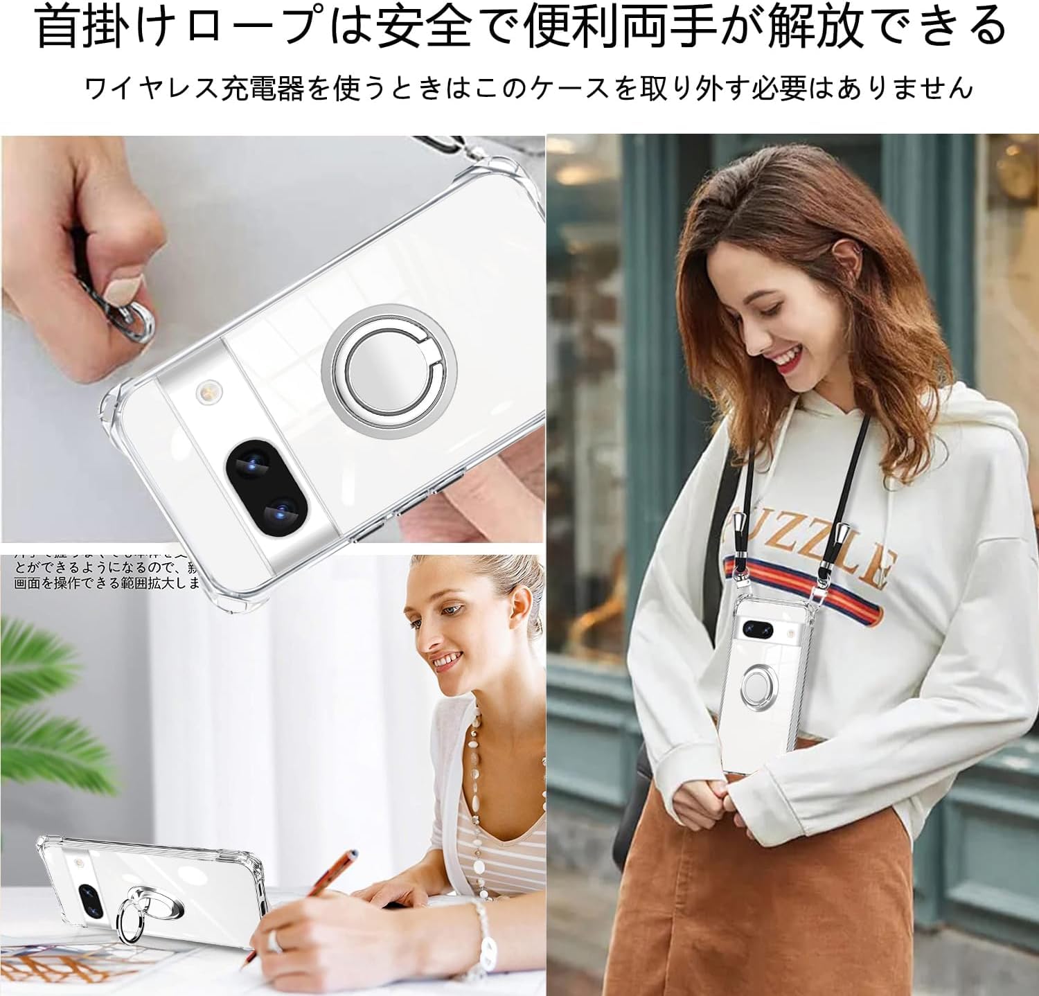 Google Pixel 8a ケース クリア ネック リング付き ショルダー pixel 8aケース 透明 耐衝撃 対応 ピクセル8a カバー 肩掛け 首かけ 斜めかけ 縄掛けスマホケース TPU ストラップ付き 携帯ケース 薄軽量 紐付き ネックストラップ ショルダー 肩掛け 長さ調整可能 取り外し可能 360°全面保護 多機能 斜めかけ 衝撃吸収(縄掛け-ブラック)