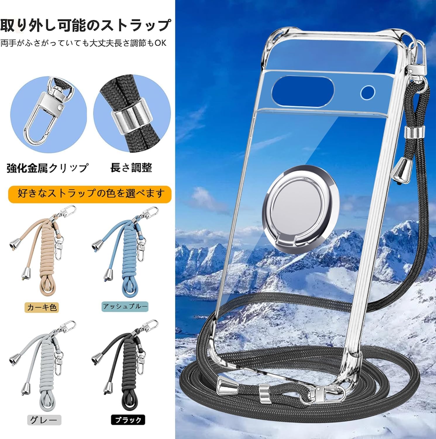 【在庫処分】Google Pixel 8a ケース クリア ネック リング付き ショルダー pixel 8aケース 透明 耐衝撃 対応 ピクセル8a カバー 肩掛け 首かけ 斜めかけ 縄掛けスマホケース TPU ストラップ付き 携帯ケース 薄軽量 紐付き ネックストラップ ショルダー 肩掛け 長さ調整可能 取り外し可能 360°全面保護 多機能 斜めかけ 衝撃吸収(縄掛け-ブラック)