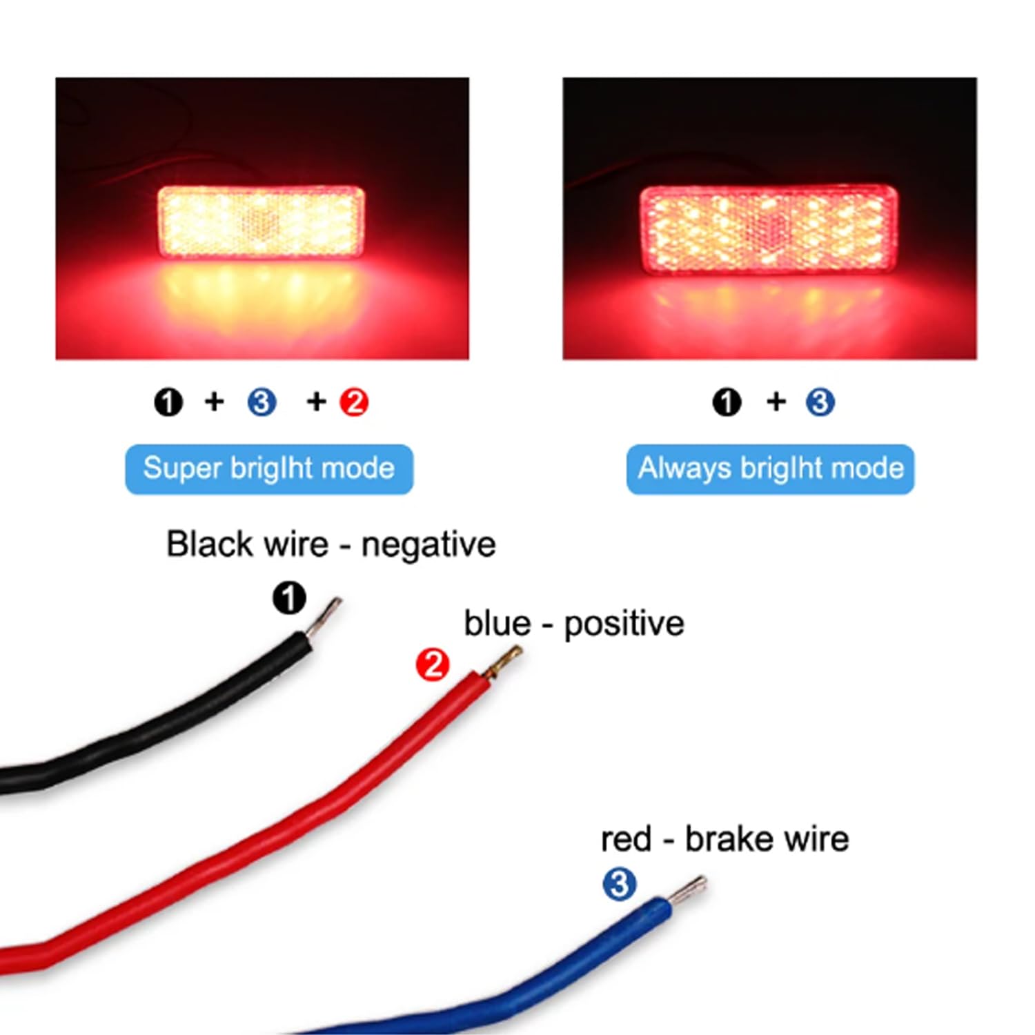 三行の設計、黒いライン否定的、青は連続したライト(低い)と接続することができます、赤はブレーキ ライト(ハイライト)と接続することができます; ハイライトおよび微光の対照は明らかではないです。